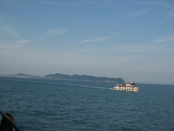 近四個小時的路上顛簸(大家可以理解,路上有時會比較堵),我們趕到蓬萊碼頭,購票,上船。家用小轎車單程擺渡費140元,乘客每位30元。