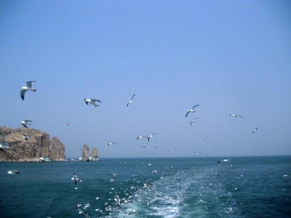 吃完早餐,跟老板夫婦告別后,經(jīng)過連接南、北長山島的玉石街,遠遠的看看望夫礁,也叫望福礁,據(jù)說那只是一個傳說,只能下次再來欣賞了。按照漁家老板的指點,到海鮮市場買了點新鮮的海鮮給親人嘗嘗,我們便戀戀不舍的離開了長島,離開了大海。