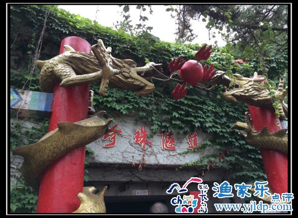 沿途就走到了珍珠隧道,黑乎乎的一個(gè)狹長(zhǎng)山洞,洞壁刻著神話傳說(shuō)。