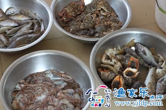 下船后,長(zhǎng)島漁家樂(lè)的老板來(lái)碼頭接我們,剛到達(dá)沒(méi)多久,就開(kāi)吃了,一桌子的美味啊,出來(lái)玩的這幾天里面,在漁家是吃得最好,住得最好的,我特有成就感,因?yàn)槭俏疫x的,哈哈!
