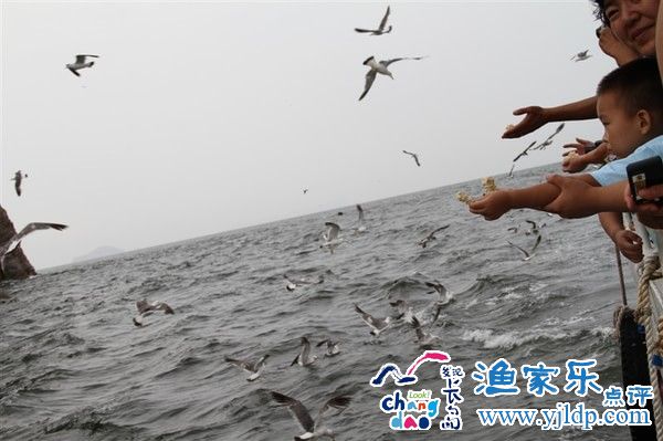 長(zhǎng)島的第二天早上我們乘船去了萬鳥島,這也是鼎鼎大名的一條線路了。往返三個(gè)多小時(shí),船票190,價(jià)格不菲。剛剛起航,就不時(shí)見到海鷗在周圍盤旋,懂行的人說這還差遠(yuǎn)了呢,萬鳥島還沒到呢!原本想著買點(diǎn)方便面,但是在哪里似乎也沒看到賣東西的,穿上一包里面三塊簡(jiǎn)裝的竟然要10元錢,睿爹果斷選擇不買。睿看到有的小朋友舉著方便面,不斷要求媽媽去找人家要一塊。鄰座阿姨看出了小朋友的心思,送給我們半塊,終于圓了我們的喂海鷗夢(mèng)。終于接近萬鳥島了,只見遠(yuǎn)處一艘船已經(jīng)被成千上萬海鷗圍住,我們這邊把方便面舉得高高的,小朋友嘴里不停的喊著:“開飯嘍 ”!無奈,精明的海鷗們只是去吃人們?nèi)舆M(jìn)海里的,卻不肯在人手上啄食。這壯觀的場(chǎng)景,也算多少告慰了一下我們的銀子吧!