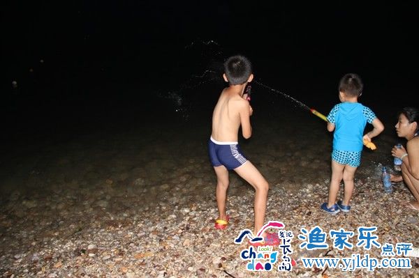 晚飯后由駐地走著十分鐘到達(dá)月牙灣,至于它是否像月牙,也看不見了。據(jù)說這個(gè)時(shí)候也是不要門票的。換好了泳衣,買了泳圈,然而到這才被滿地的球石給嚇住了,沒想到這么扎腳,根本不敢光腳走路,另外盡管天氣悶熱,但是海水還是很涼,鼓足勇氣進(jìn)去泡了一會(huì)兒,片片就算了,實(shí)在不敢秀泳衣。孩子們很開心,在球石灘上不停嬉戲,睿更是哪塊石頭都喜歡,這些石頭在海水的沖刷下,光滑瑩亮,的確是很漂亮。帶回了一些,放在魚缸里,這好像也是這次旅行帶回的唯一實(shí)物了。