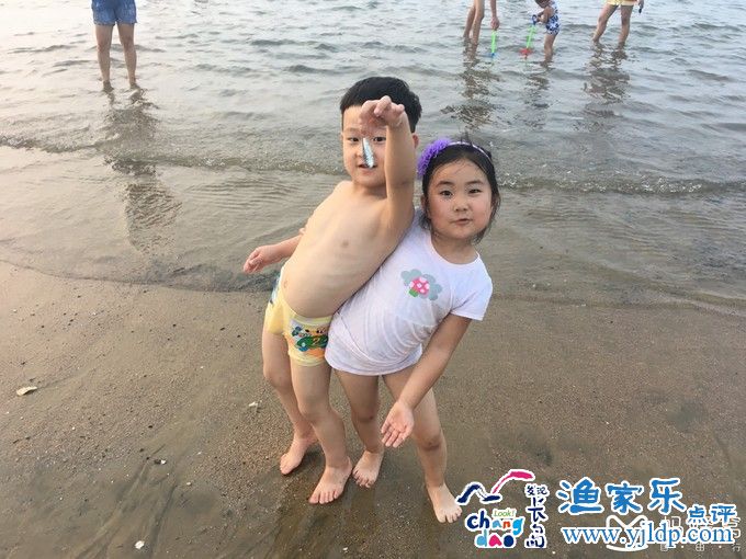 第一次見到的大海的寶貝們特別興奮,捉小魚,壘城堡,玩的不亦樂乎,暮色將近,遲遲不愿離去。對于蓬萊的第一印象是一座海濱小城,以前總幻想著蓬萊在一座海島上,白云纏繞,仙氣縹緲,走進現(xiàn)實,才知道這只是一座普通的城市,靠海吃海,那里的人們說話總帶著重重的卷舌音,卻很淳樸熱情~