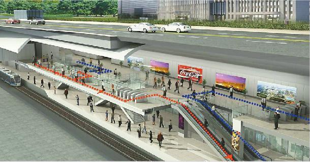●奧體中心西站:建設位置位于奧體西路與經(jīng)十路交叉口北側(cè),覆蓋齊川路、山東長島漁家樂永綏路。由換乘節(jié)點層、站廳層、站臺層、站臺板下層組成,總建筑面積20223.8平方米。由于此站點是R3線與規(guī)劃M3線換乘站點,因此面積較大。