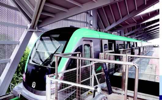 對于列車的優(yōu)勢,中車青島四方機(jī)車車輛股份有限公司城軌事業(yè)部售后區(qū)域高級經(jīng)理聶軍科進(jìn)行了揭秘,他說,列車主要在高架線路運(yùn)行,既可采用自動駕駛,也可采用人工手動駕駛。列車總長80.5米,最大寬度2.89米,最大高度3.8米,動力充沛,加速快。列車具備蓄電池牽引功能,即在沒有外界電源輸入的情況下,也可以自行前進(jìn)或后退。