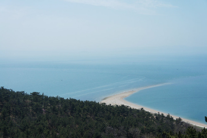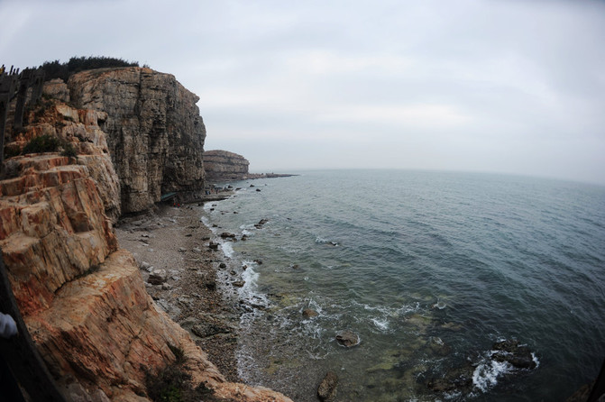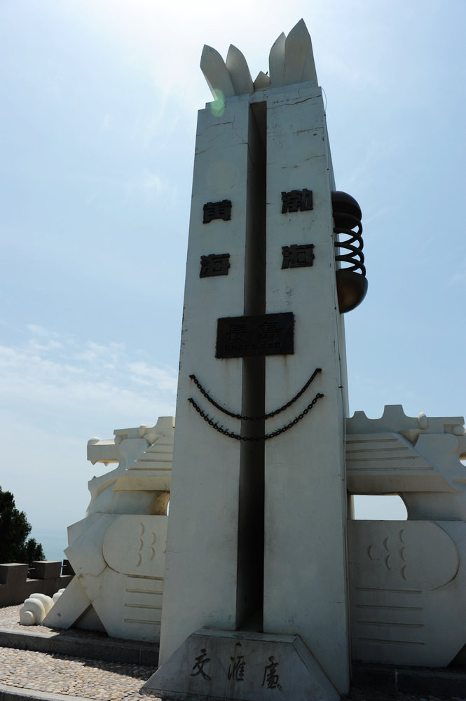 看完海豹,又馬不停蹄地趕到了長(zhǎng)島的高處,林海公園。在這里能遠(yuǎn)眺著名的黃、渤海分界線--長(zhǎng)山尾。在海水的顏色上可謂“涇渭分明”。東部黃海部分水是深藍(lán)色,而西部渤海水卻顯得渾濁,略呈微黃色。