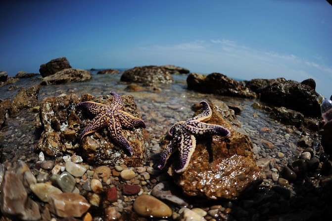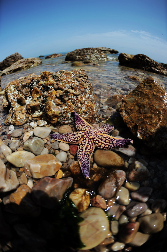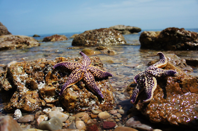 長(zhǎng)山尾邊上的海灘。海水很是清澈,借同行伙伴的小桶和海星拍了幾張,算是此行的紀(jì)念。