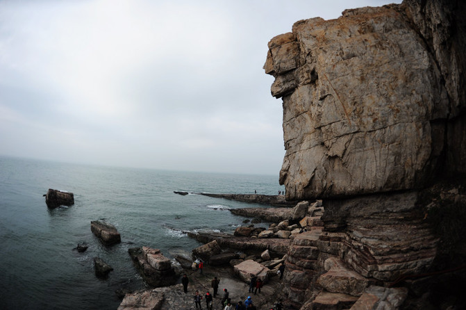 酒足飯飽,開(kāi)始游長(zhǎng)島。我們的第一站是九丈崖,位于北長(zhǎng)山島的西北角,山崖險(xiǎn)峻,水深流急,巖礁棋布,自然景觀獨(dú)樹(shù)一幟。景區(qū)集山、海、礁、崖、洞及古跡于一體,融奇、雄、秀、美、險(xiǎn)、神于一身,具有很高旅游和美學(xué)價(jià)值。