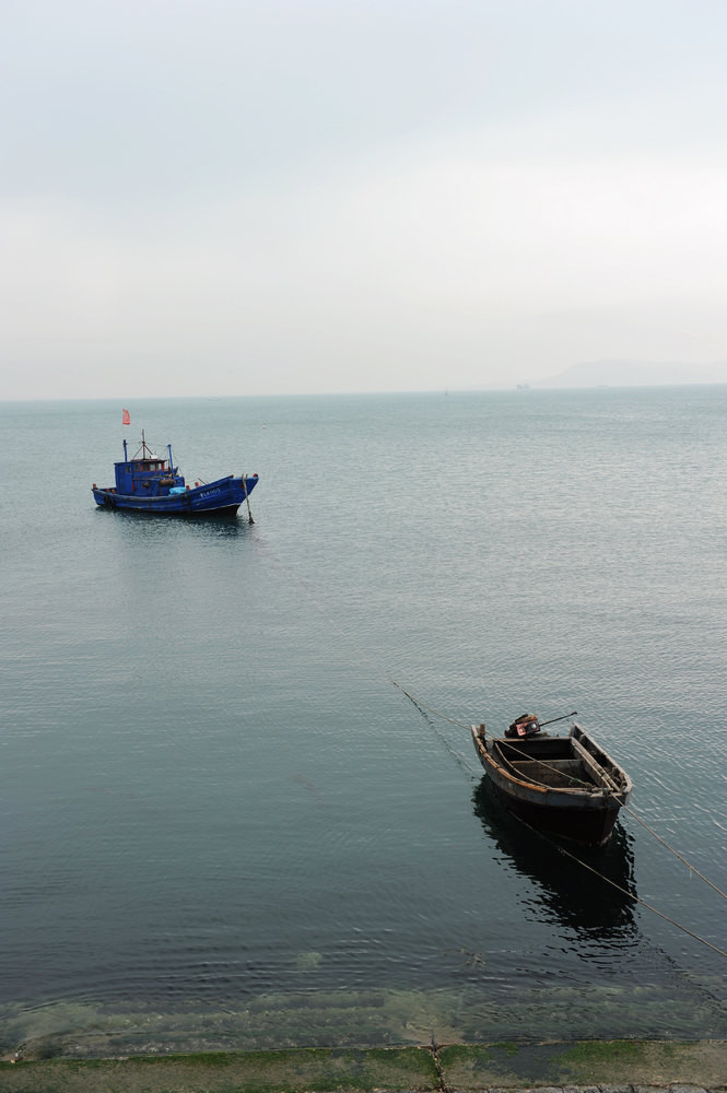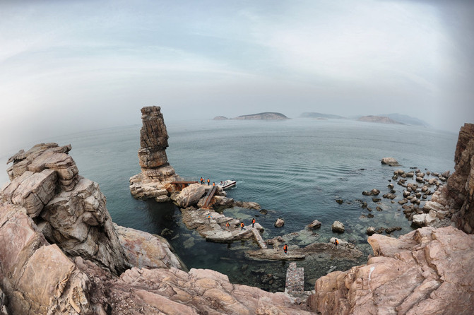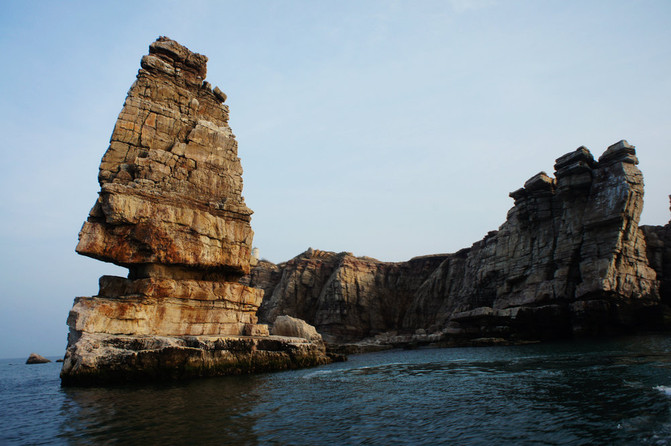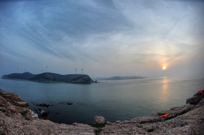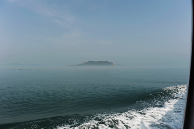 航行的途中會(huì)在廟島短暫???,遠(yuǎn)處那個(gè)霧氣中顯露出來(lái)的小島即是——這長(zhǎng)島地靠蓬萊,這種朦朦朧朧的“仙氣”竟是不少見(jiàn)。