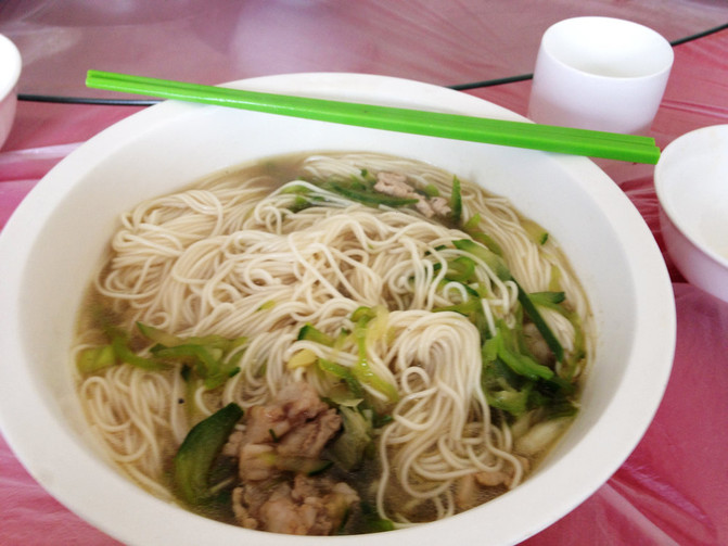 時(shí)值午后,大家肚子都餓得咕咕叫,沒(méi)成想這長(zhǎng)島的生活是閑適慣了,過(guò)了中午飯點(diǎn),店家竟然不賣(mài)飯菜……幾番交涉,終于答應(yīng)為我們煮面充饑。于是在長(zhǎng)島的第一餐,就是從這般用比洗臉盆還大的盆子乘的面開(kāi)始……
