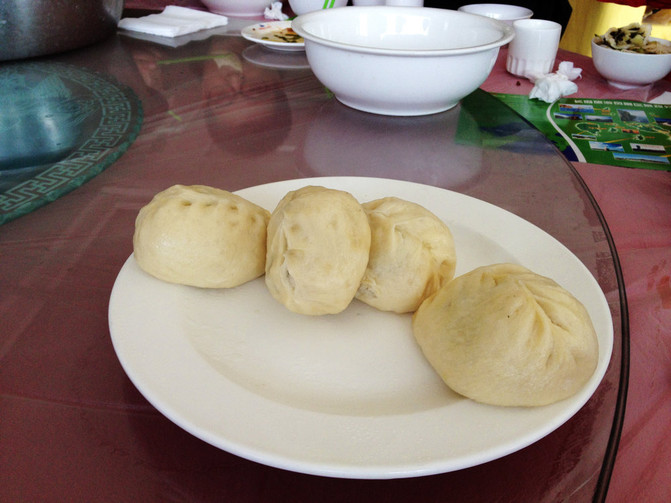 海菜餡兒的包子,味道不錯(cuò),一人2個(gè)。