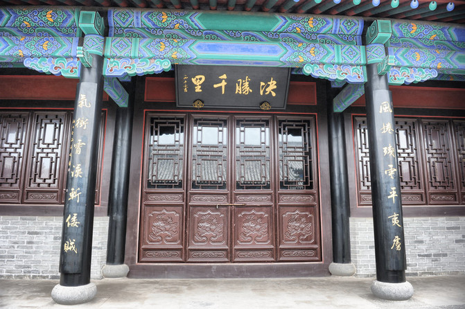 風(fēng)卷殘?jiān)破揭奶?,氣沖霄漢斬倭賊。橫批:決勝千里——讀來(lái)豪氣頓生。這里是備倭都司府官邸正房,官邸正房通過(guò)大型漆畫(huà)和金絲楠木雕,展示明代幾次重大抗倭戰(zhàn)役。