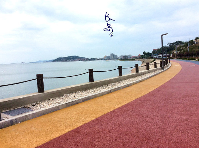 沿著海邊的路,旁邊彩色的竟然是塑膠的,像是運動場的跑道,人很少,騎自行車游逛,最好。