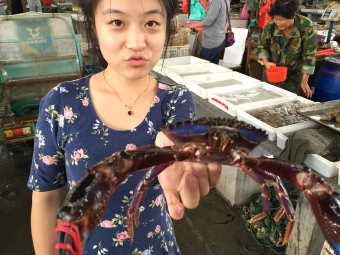 中午和熊熊一起跟著老板去海鮮市場采購食材,好奇的我是東瞅瞅西看看,好多海鮮都叫不上名字耶,不過熊??這個行家還是蠻厲害噠,邊給我介紹邊讓我拿著海鮮當(dāng)?shù)谰吲恼蘸瞄_森哈哈哈