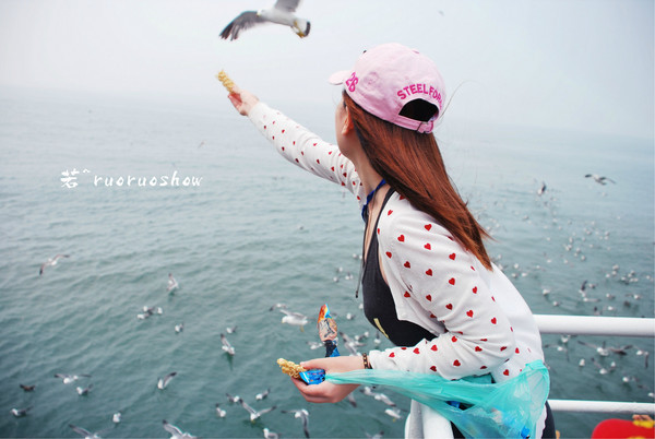 享受了一天美好的天氣,接著便迎來(lái)了霧天。不過(guò),我的心情卻不會(huì)被霧霾籠罩,因?yàn)?,今天要去做一件非常有趣的事情——到“萬(wàn)鳥(niǎo)島”喂海鷗。漁家的牟大叔告訴我,現(xiàn)在正值海鷗最多的時(shí)候,這里的海鷗愛(ài)吃方便面,于是,前一天晚上便備足了食物,第二天啟程萬(wàn)鳥(niǎo)島!整個(gè)萬(wàn)鳥(niǎo)島的船程在4個(gè)小時(shí)左右,在開(kāi)往島的過(guò)程中,便可以看到海鷗從四面八方趕過(guò)來(lái),跟著我們的船一起飛,它們似乎知道船上的人們也是遠(yuǎn)道而來(lái)。1個(gè)多小時(shí)后,船行駛到了萬(wàn)鳥(niǎo)島,大家都迫不及待地拿出食物,心急的海鷗會(huì)直接從你的手中叼走方便面,你也可以把食物拋向空中,讓這些小家伙們玩一次“空接”,真是一次非常特別的體驗(yàn)!選擇長(zhǎng)島漁家樂(lè)親們可以到長(zhǎng)島漁家樂(lè)點(diǎn)評(píng)網(wǎng) qiangwoapp.com 和長(zhǎng)島旅游網(wǎng) www.quchangdao.com 選擇 里面的漁家都可以為我們代訂去鳥(niǎo)島的郵票,比較方便的。