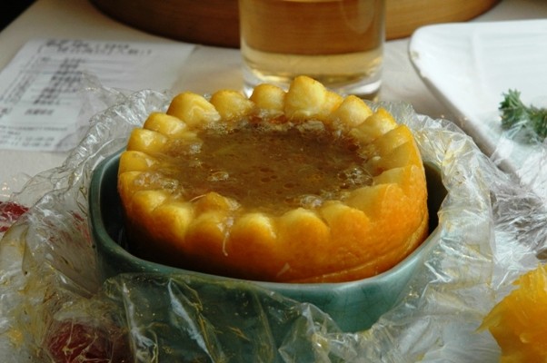 菠血糯飯采用新鮮菠蘿、上好的血糯米、自制棗泥、自制豆蓉、細(xì)砂白糖,所有的原料都放入到菠蘿里面,上籠蒸30分鐘,取出裝盆即可。該點(diǎn)心在天香樓掛牌銷售已有三年多時間,一直受到廣大顧客偏愛