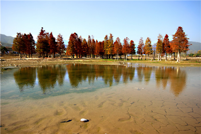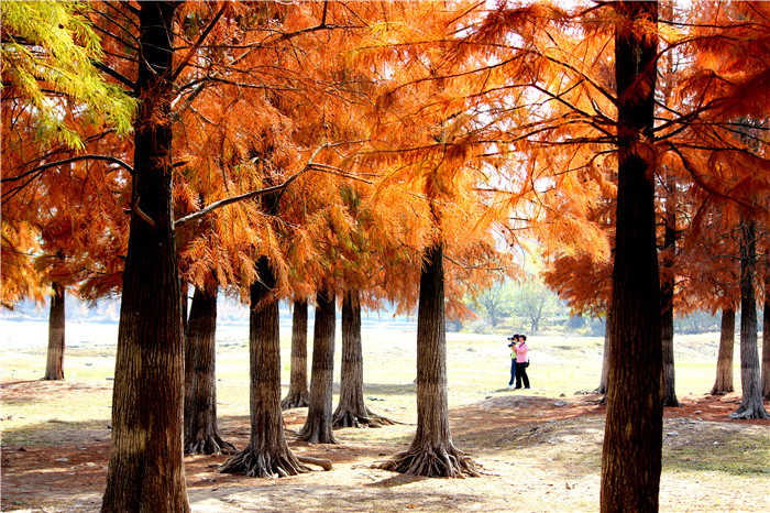 火紅的水杉,是塔川紅葉的重要組成部分。在宏村出來向南走不遠,就到了奇墅湖,這里的水杉更美??上У氖乾F(xiàn)在的奇墅湖幾乎沒有水了,不然水面上倒映著的紅色樹林應該很養(yǎng)眼。