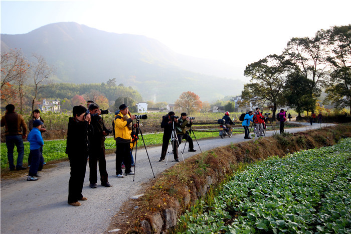 盡管塔川不如宏村名氣大,但塔川秋色確實是攝影界的熱門目的地。穿過塔川村口的古木林,依清溪沿石階拾級而上即可進入村內(nèi),每到秋季,滿山樹葉色彩斑斕,從黃、淺紅到火紅,極富層次,是中國三大秋色觀賞地之一。