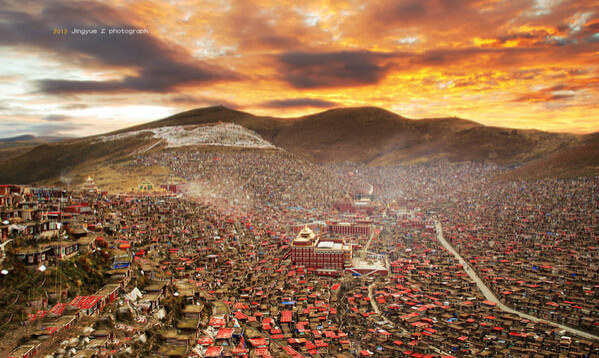 那是一片最為純凈的佛國(guó)天堂,在雄偉的群山之間,碧藍(lán)的蒼穹之下,古老的寧瑪紅教傳承著藏傳佛學(xué)的博大文化和濟(jì)世情懷。隨風(fēng)飄揚(yáng)的經(jīng)幡,依山而建的紅屋,慈祥溫暖的僧眾,匆匆一眼,那些累世光景,俗世梵音便會(huì)深深烙印在腦海。