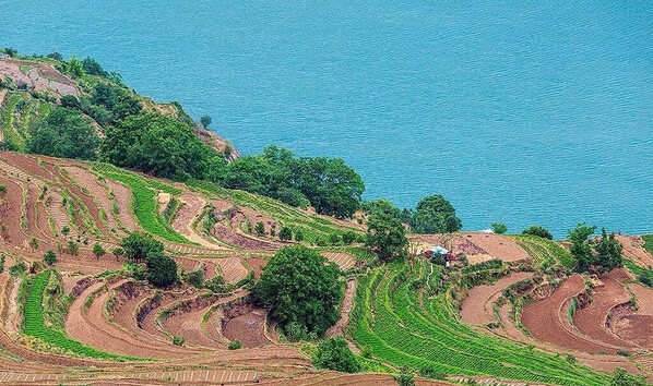 住在石城里的居民善于農(nóng)耕,他們把家園建在巨石上,把生活開墾到了巨石之外的土地上,他們壘造梯田,興建水利,種植水稻、小麥、玉米等,形成層層梯田環(huán)繞著巨石。5月麥?zhǔn)欤?0月稻黃,碧綠金黃的麥海稻浪托舉著巨輪般的石城,是寶山石頭城最美的季節(jié)。