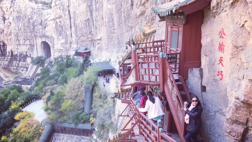 ·懸空寺原來叫“玄空閣”,后來改名為“懸空寺”,是因?yàn)檎略壕拖駪覓煸趹已轮稀?·全寺為木質(zhì)框架式結(jié)構(gòu),有殿琮樓閣40 間,其實(shí)懸空寺不大,最值得驚嘆的是它依靠榫接結(jié)構(gòu),嵌入崖內(nèi)而不倒。 ·懸空寺始建于北魏,距今已有1500多年歷史。是國內(nèi)現(xiàn)存最早、保存最完好的高空木構(gòu)摩崖建筑。 ·樓閣間以棧道相通,寺不大,但巧奪天工,詩仙李白觀后醉書壯觀,徐霞客贊為天下巨觀。