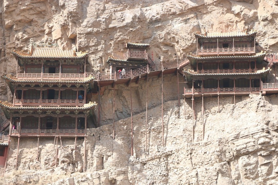 懸空寺:國內(nèi)好多個(gè)懸空寺,而我們通常所說的、最著名的懸空寺是指位于山西大同恒山的懸空寺。大同懸空寺建成于1400年前北魏后期,是中國僅存的佛、道、儒三教合一的獨(dú)特人文古跡。其實(shí)懸空寺不大,最值得驚嘆的是它依靠榫接結(jié)構(gòu),嵌入崖內(nèi)而不倒,登上懸空寺,樓窄,上載危崖,下臨深谷,樓閣懸空,結(jié)構(gòu)巧奇。歷經(jīng)1500多年的風(fēng)雨、地震各種災(zāi)害侵襲,懸空寺依然巍峨不倒。
