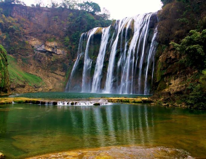 黃果樹瀑布是全世界唯一一個可以從前后左右里外上下都能觀賞的瀑布。最特別的角度要算是從黃果樹瀑布后的水簾洞觀瀑,而這個水簾洞正是85版西游記中的取景地。如果你能有幸看到彩虹交織下的黃果樹瀑布,那就真是太幸運了。