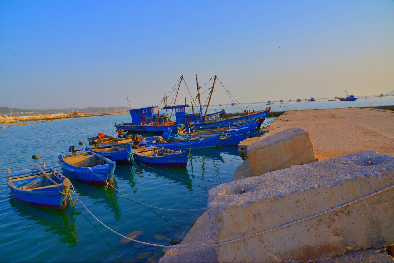 初夏時(shí)節(jié)與靜謐的小漁村相遇,那樣的美好,海邊沒(méi)有盛夏的喧囂,而是那樣清靜;海面也是那樣的柔情,嬉戲的浪花或許也是剛睜開(kāi)朦朧的睡眼,輕輕地追逐著伙伴而悠閑地遠(yuǎn)去;鋪滿彩色鵝卵石的沙灘顯得有些空曠與寧?kù)o,只見(jiàn)到三三兩兩的人兒;??吭诖a頭的小漁船,靜靜地講述著漁村的故事。