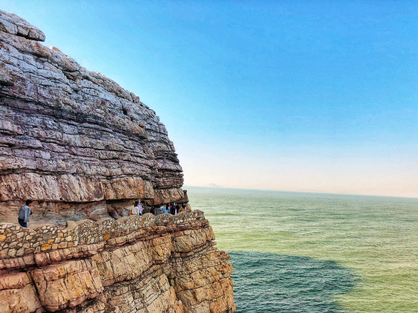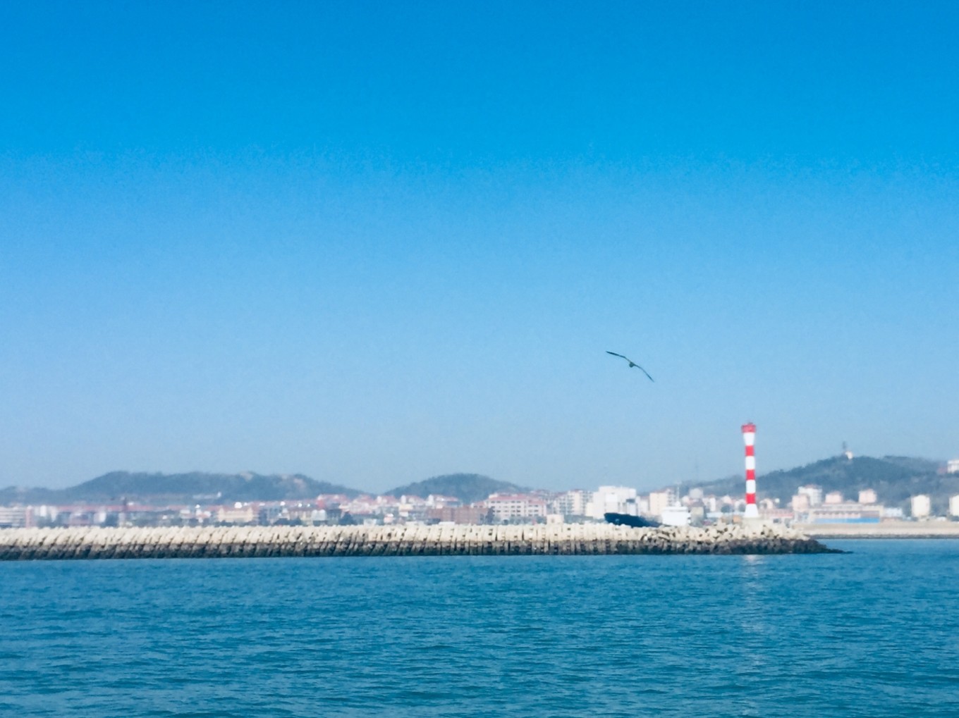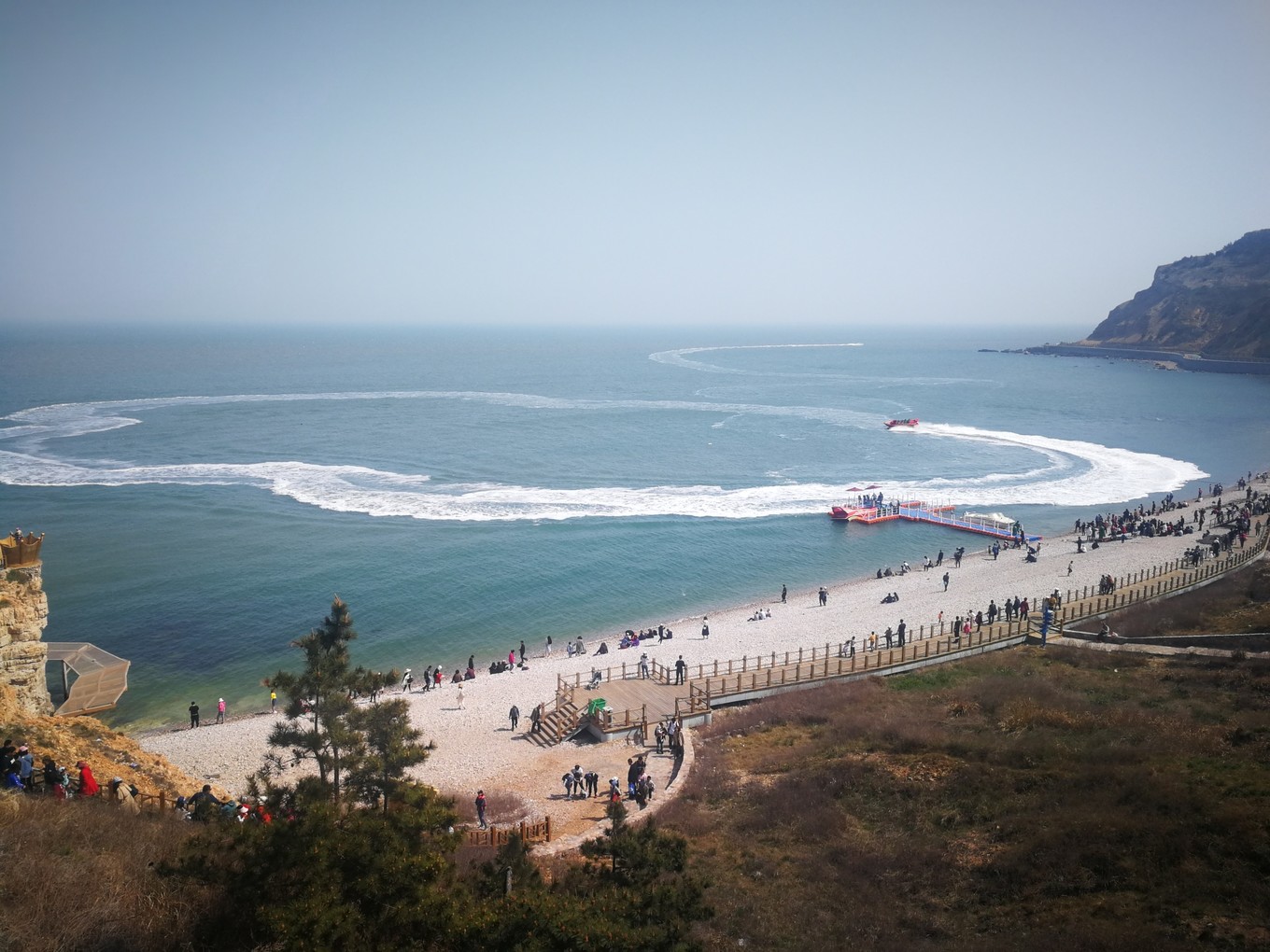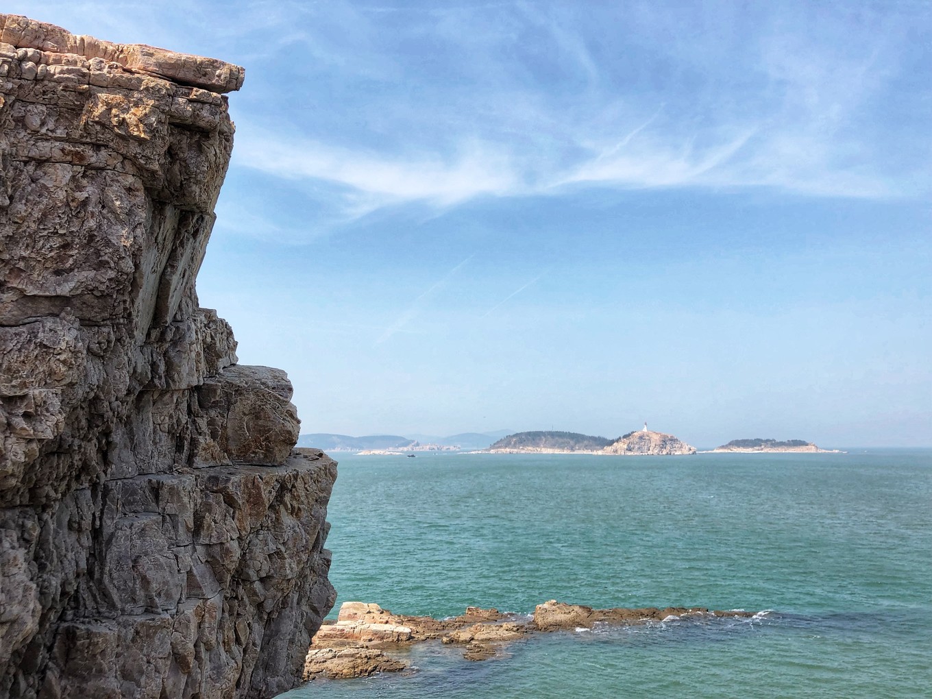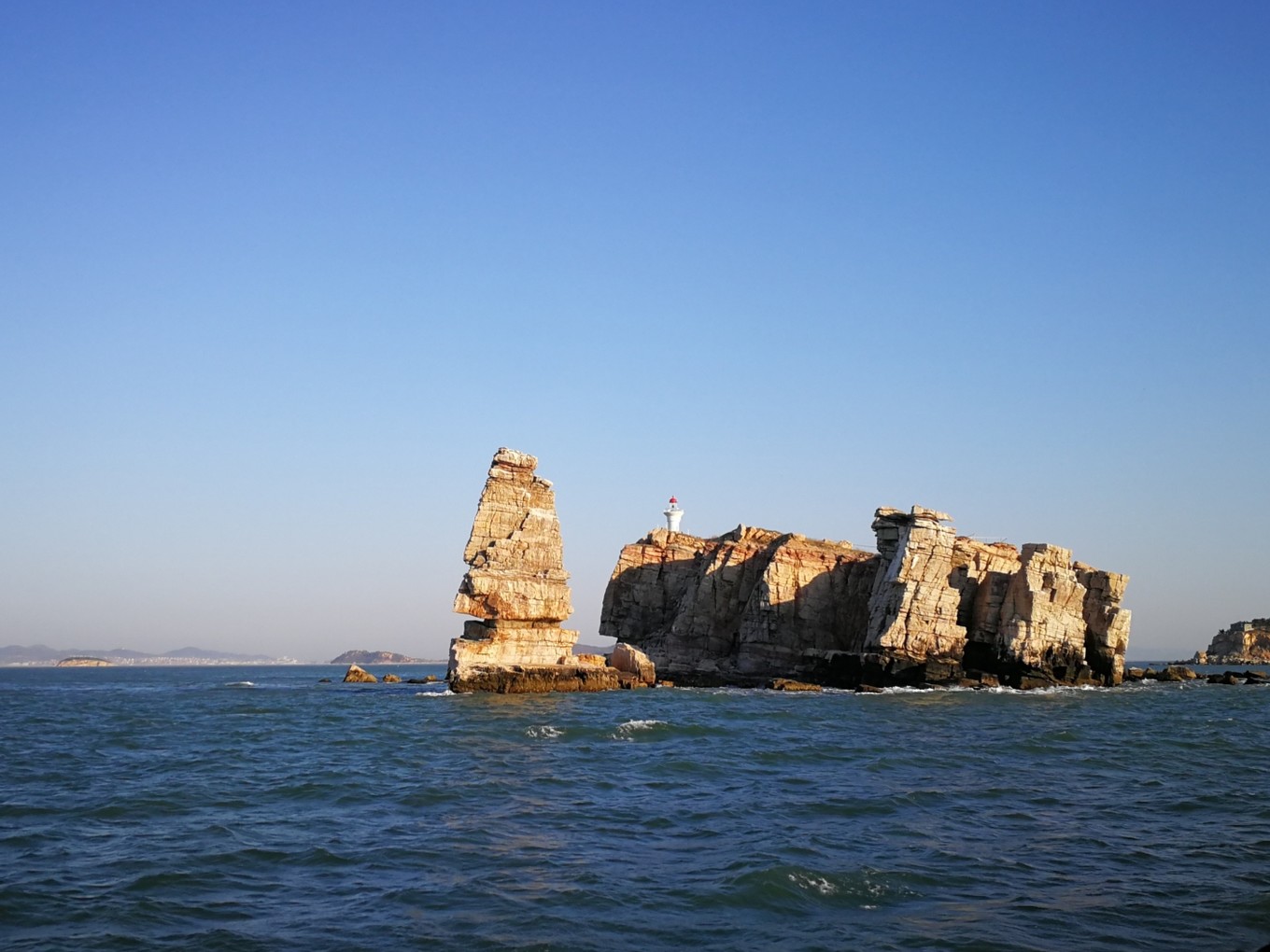 本來是想高鐵去的,但是搶不上票,才報(bào)的團(tuán)坐大巴去的。開到蓬萊,然后去蓬萊港,坐船到長島。從蓬萊港坐船進(jìn)長島,30分鐘一班船。