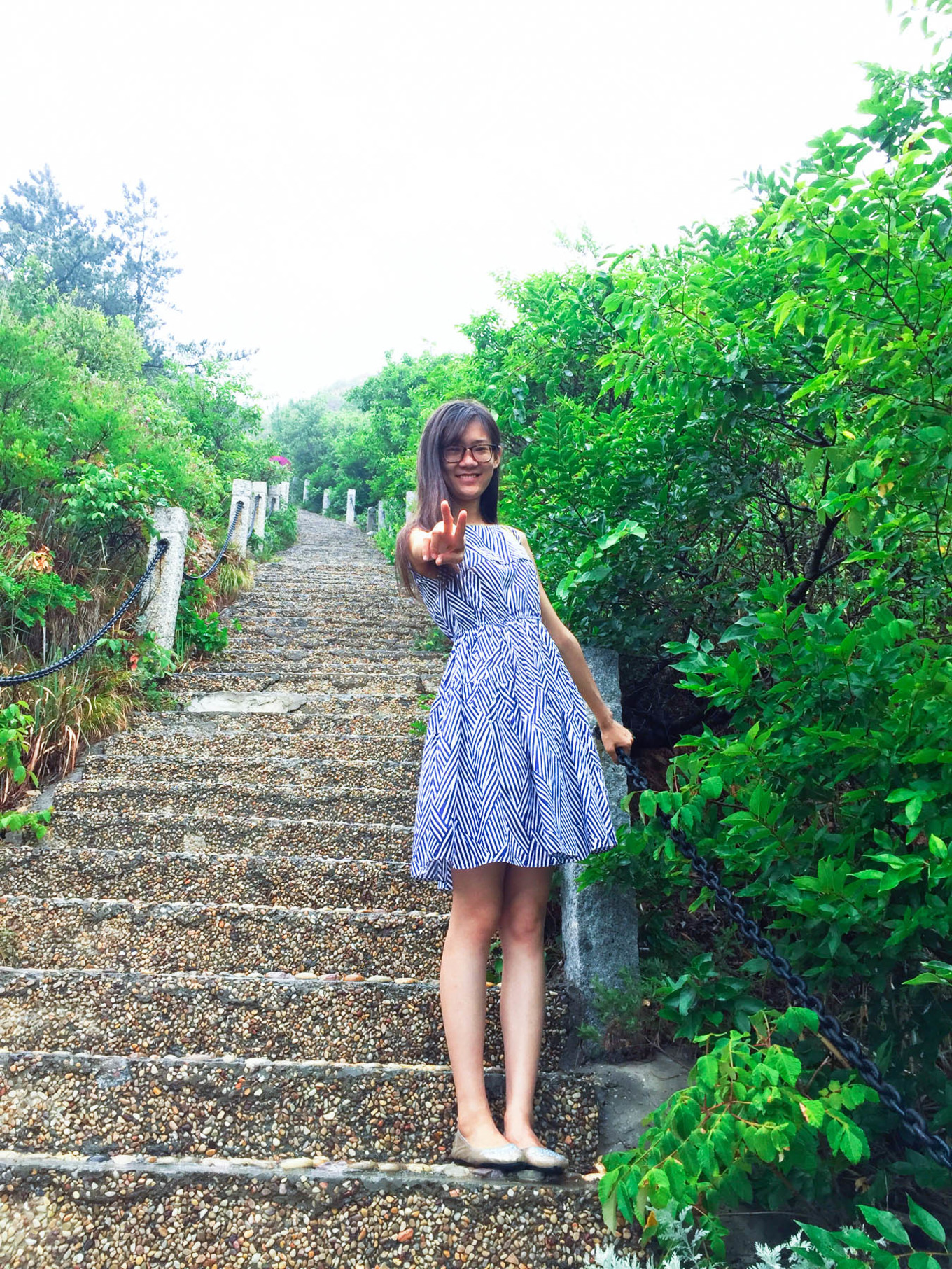 感慨自己小命沒因為涼拖被大海卷走,爬著369階梯,開心不已