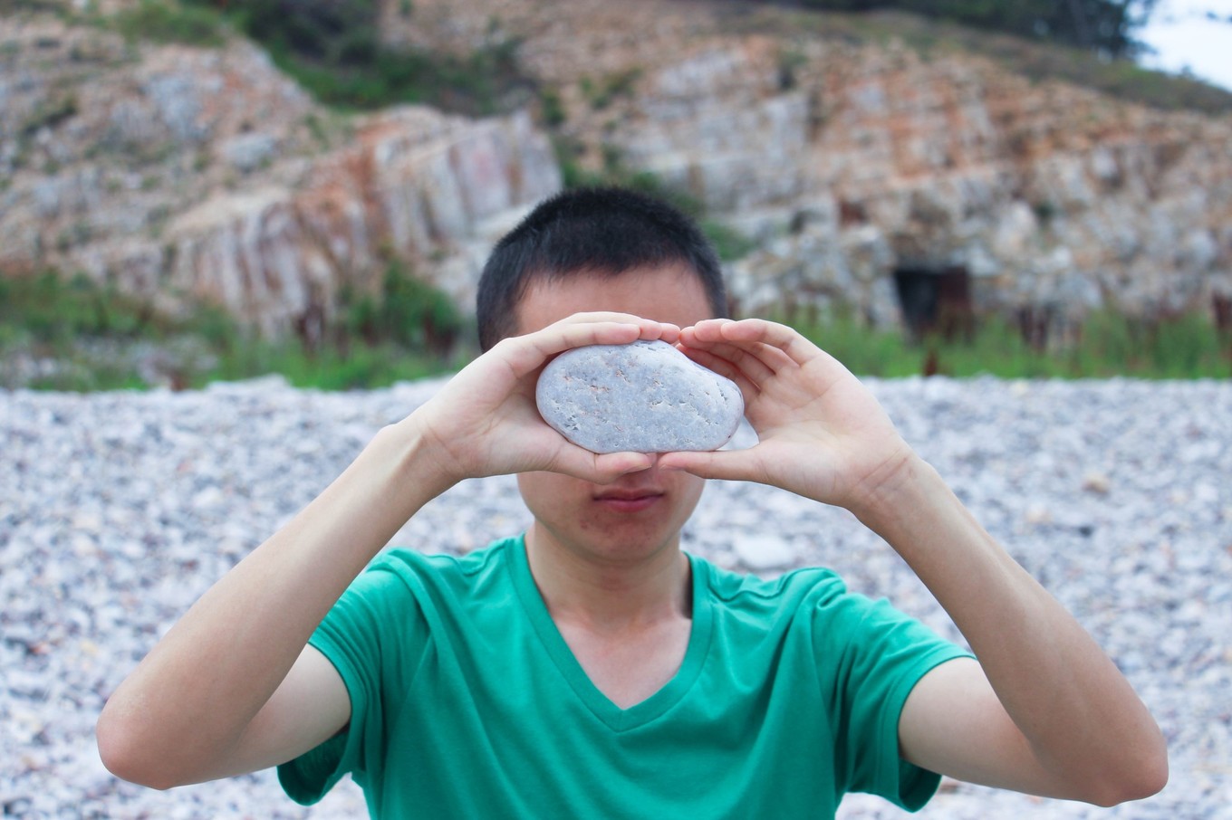 為了報復我早上六點多就把他弄出門,該男子趁我不備,把我的腳用國家資源球石埋住了
