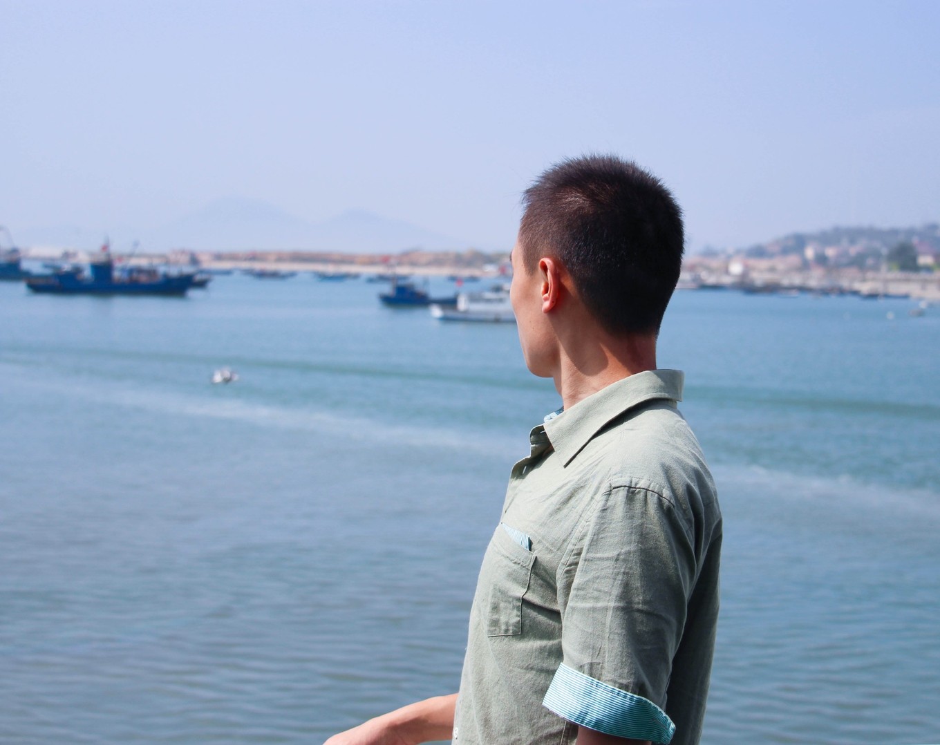 海風一定聽到了他的話,打擊報復,將他的衣服吹皺皺皺,造型吹亂亂亂。。。。