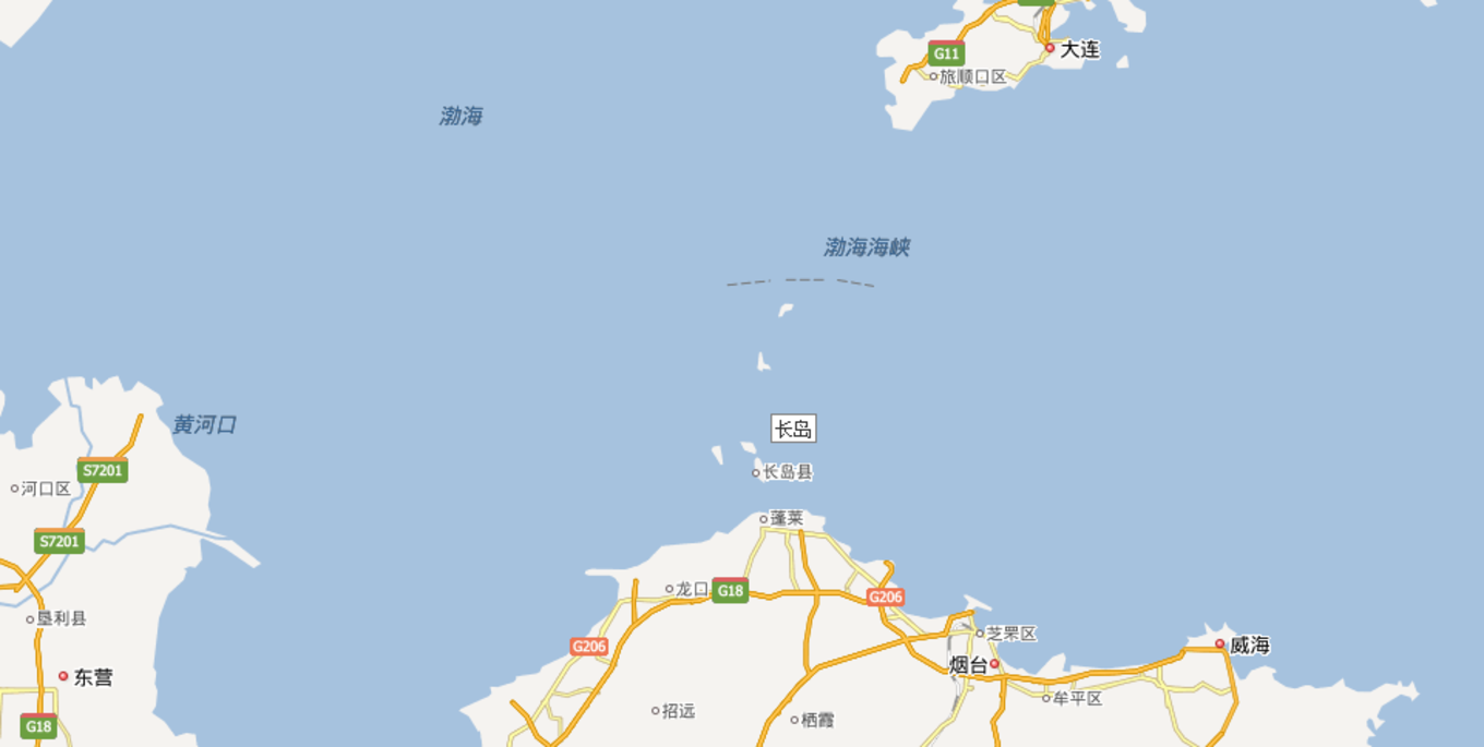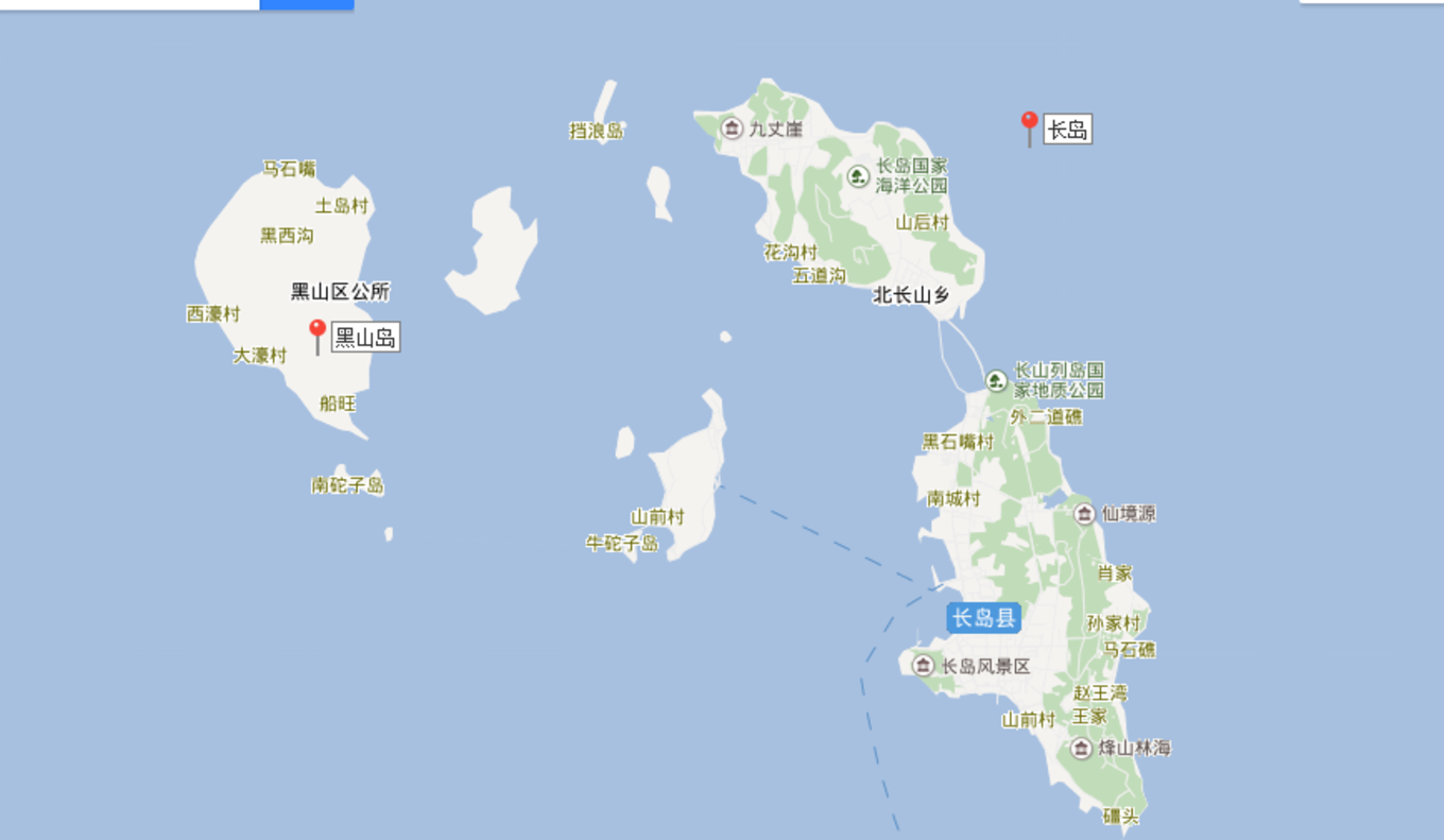 長島縣在山東的頂部,由南長山,北長山,和黑山島組成