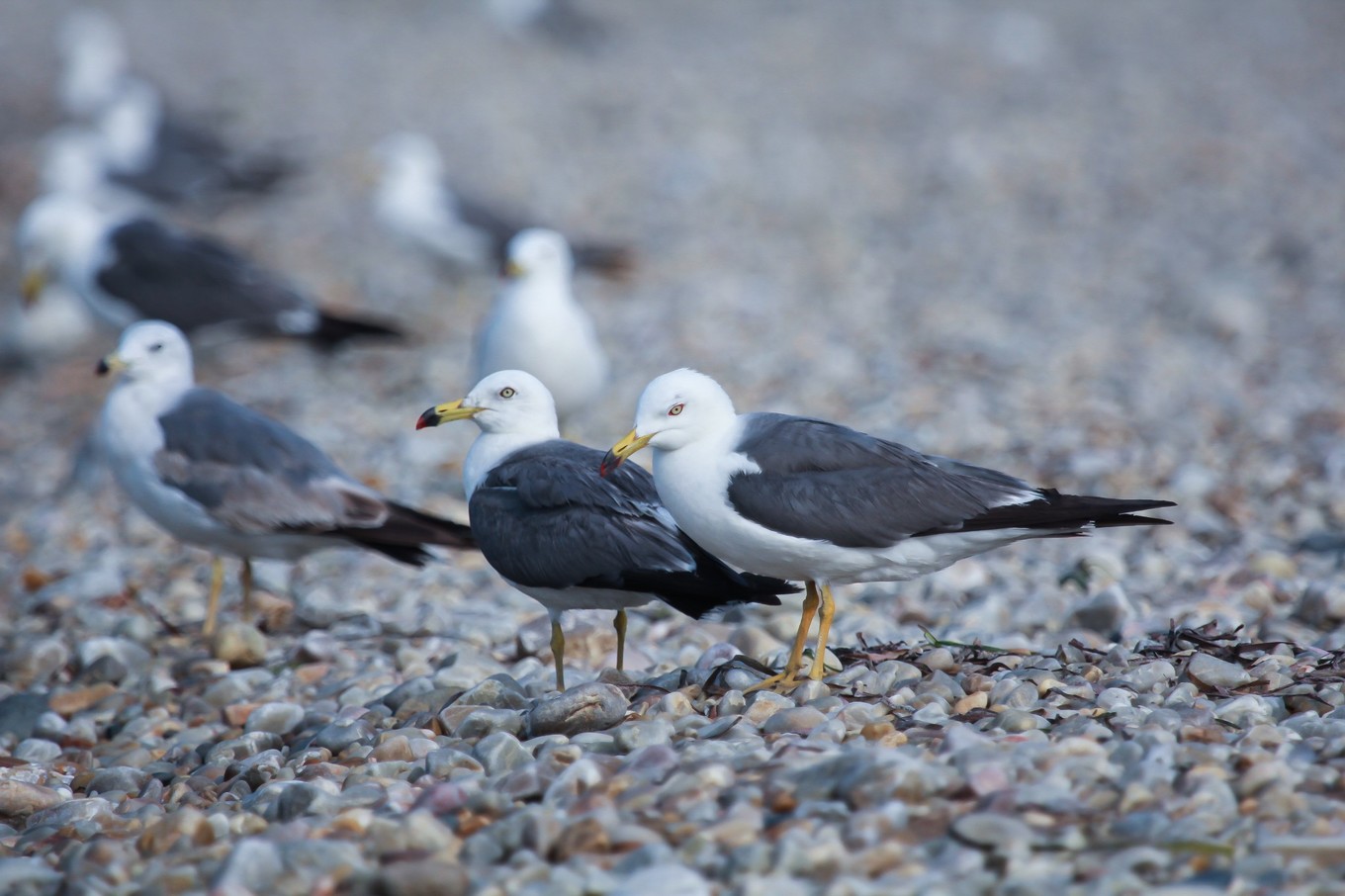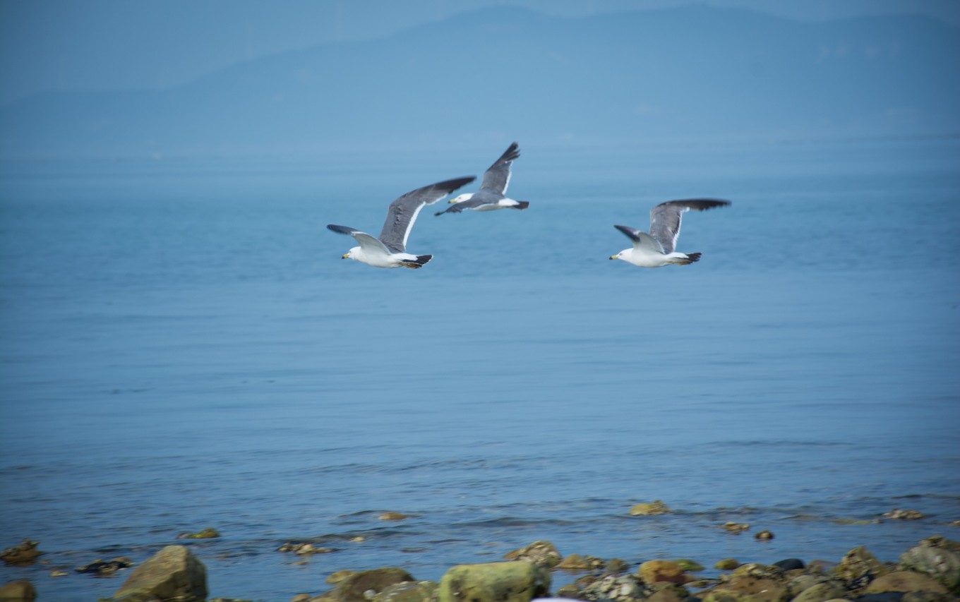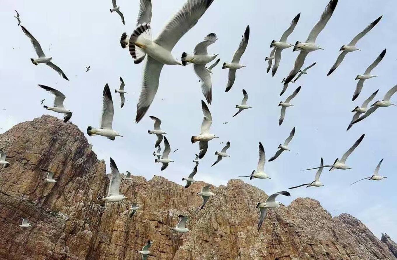 上面有很多海鷗覓食,休息
