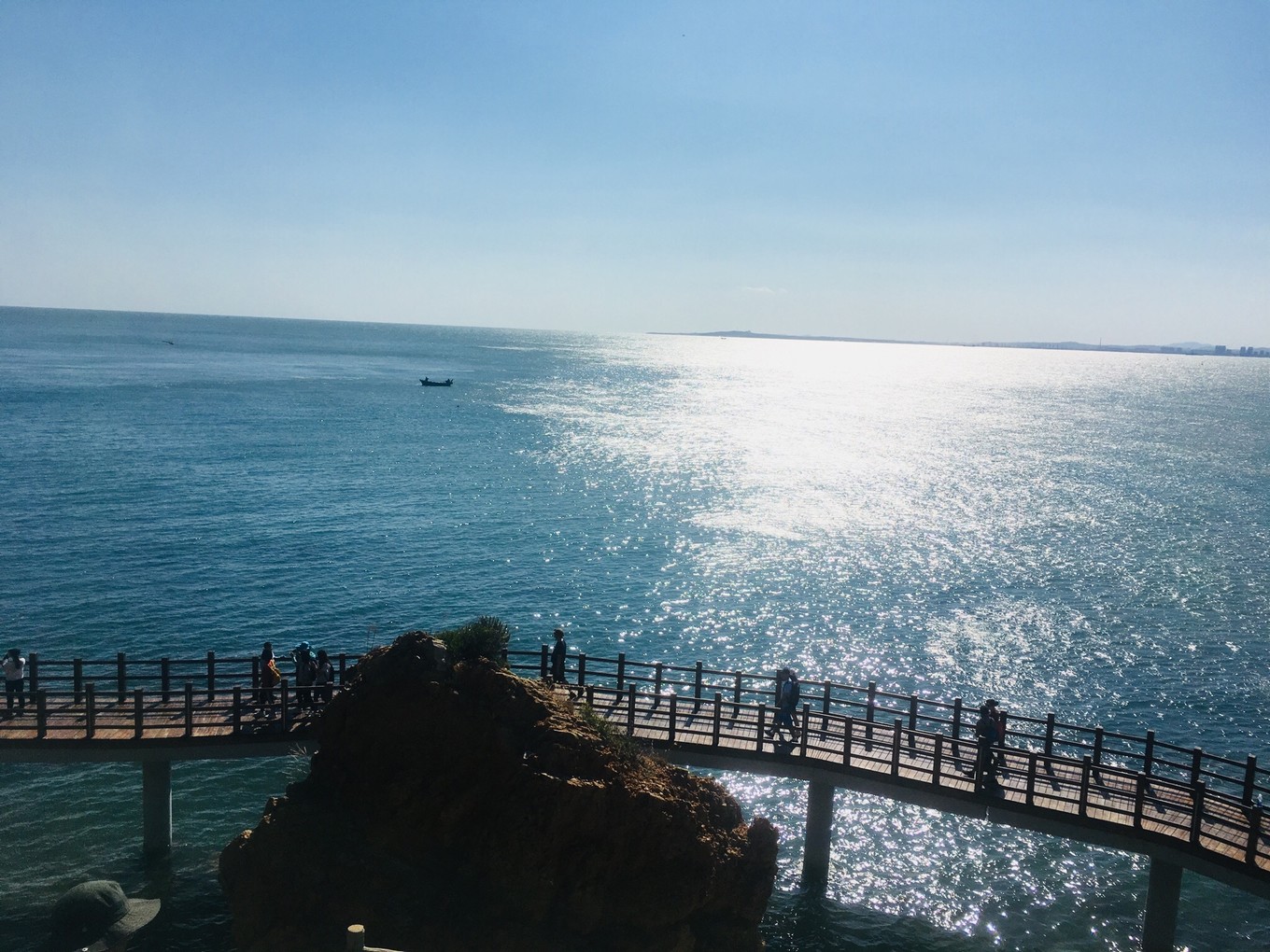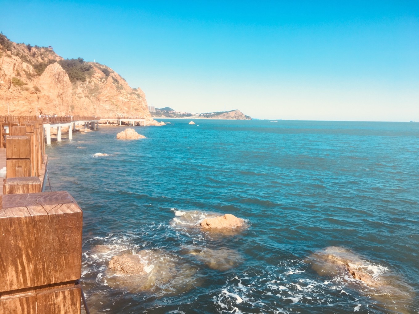 第三天-帆船??早上趕上了早一班的帆船,海鷗圍繞著帆,海風(fēng)拍打著浪,波光粼粼的海面,陽光照的讓人覺得很舒服,兩岸是蓬萊閣和八仙洞,聽說了很多神話故事。船開到海中心,黃渤海的交界處,黃色和藍色的海水銜接著,這可能就是“一腳踏兩海,兩耳聽雙濤”的即視感吧。