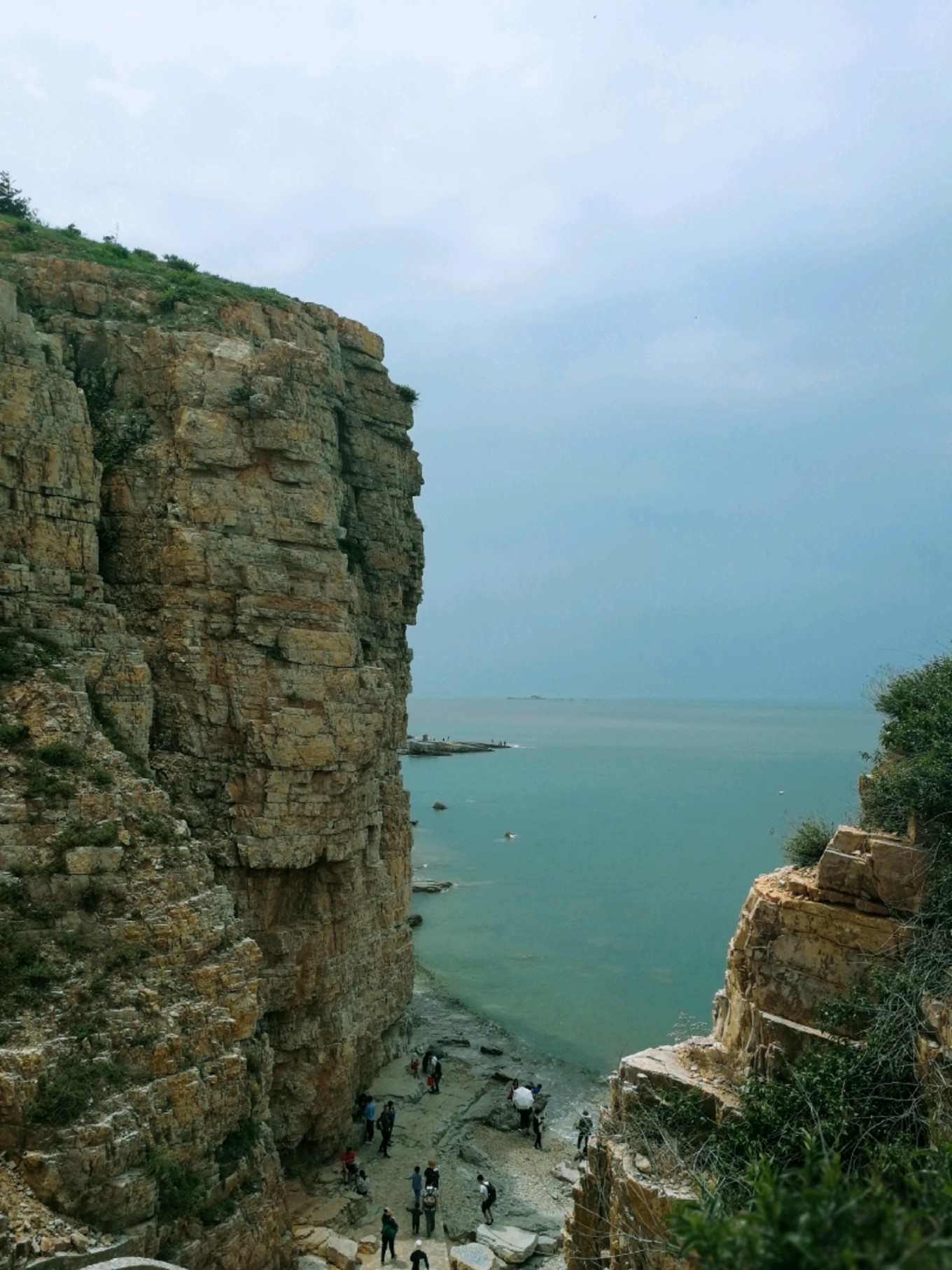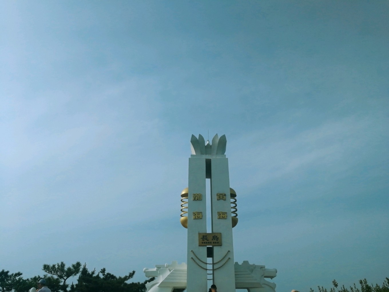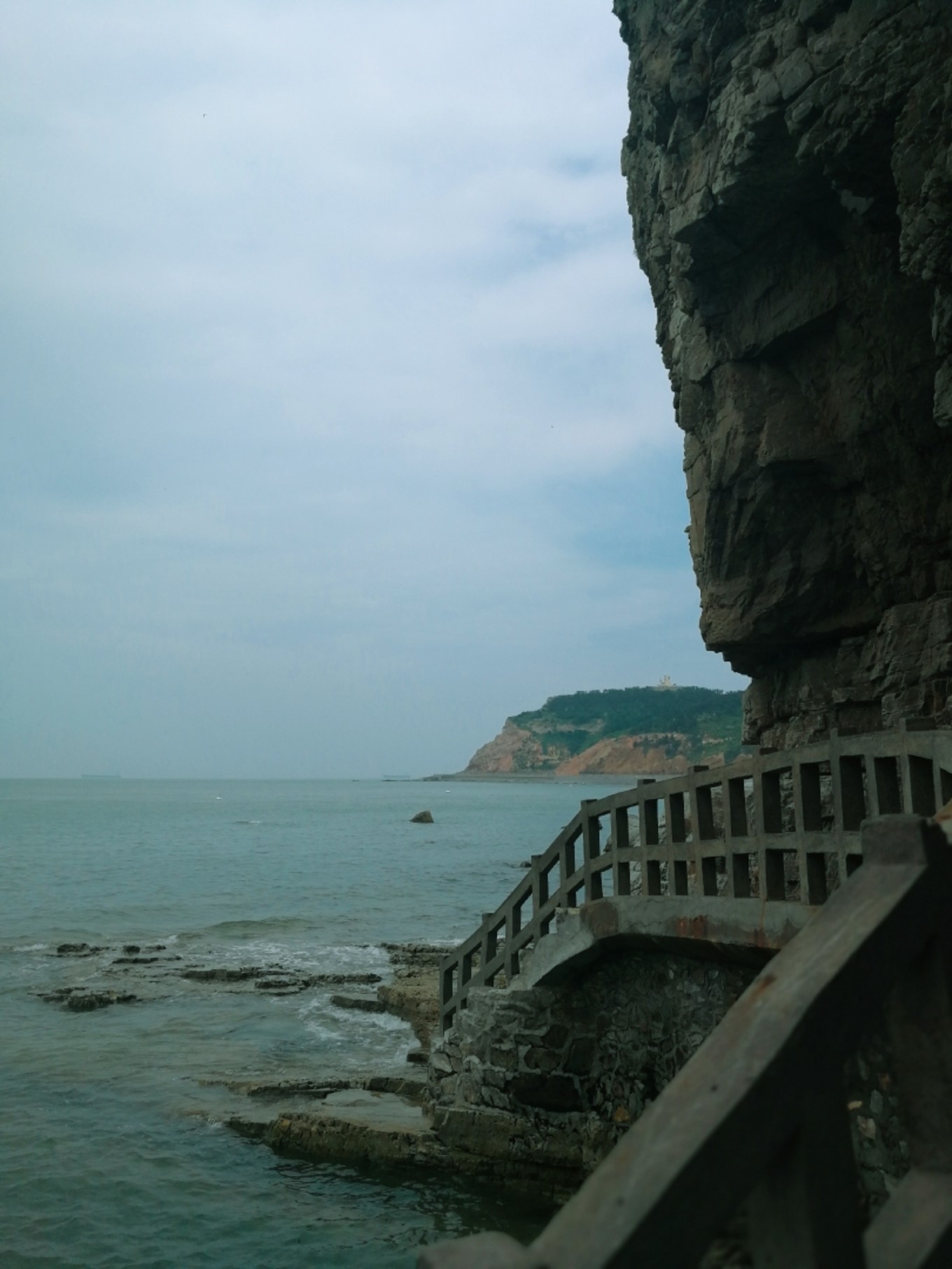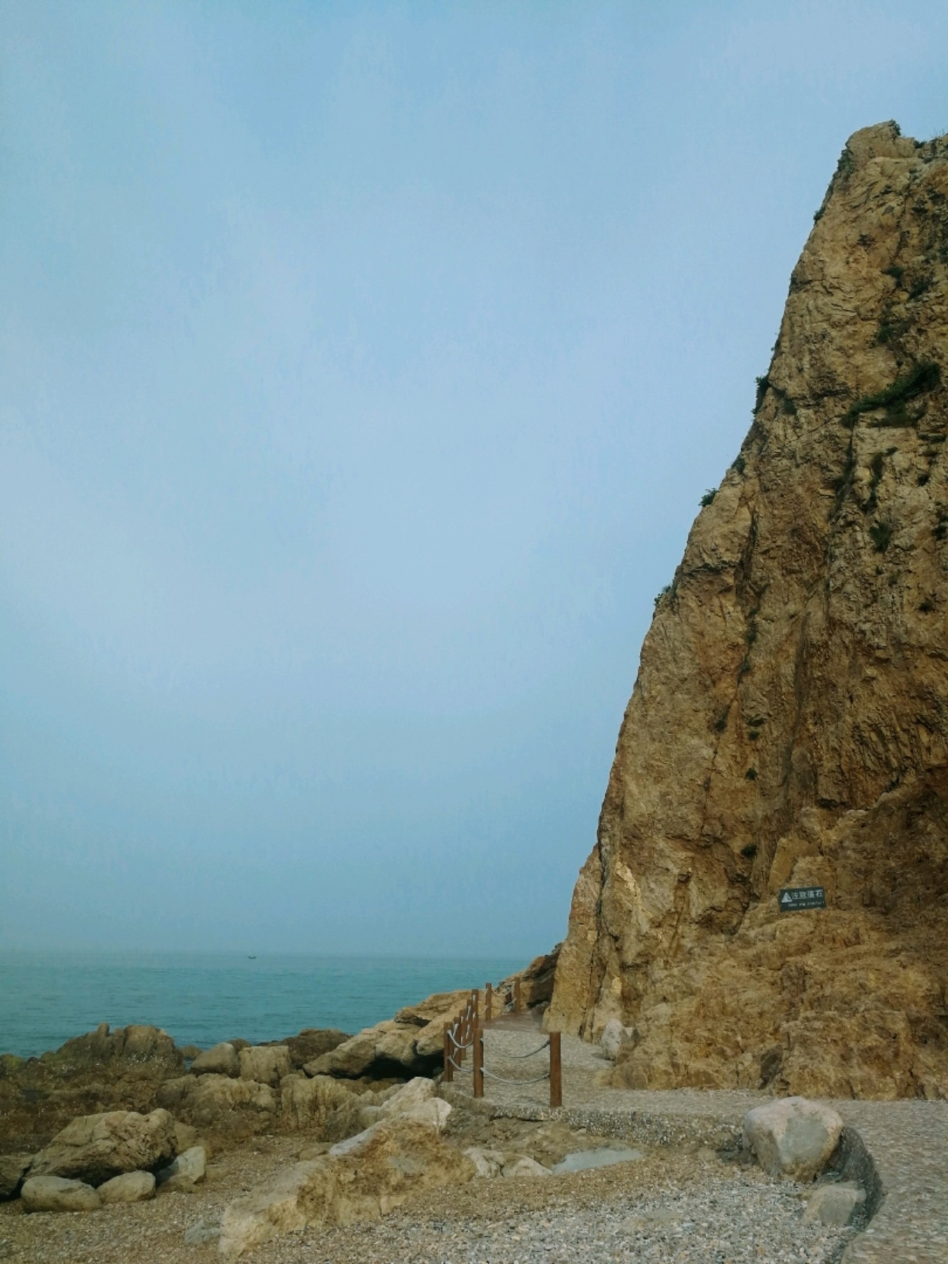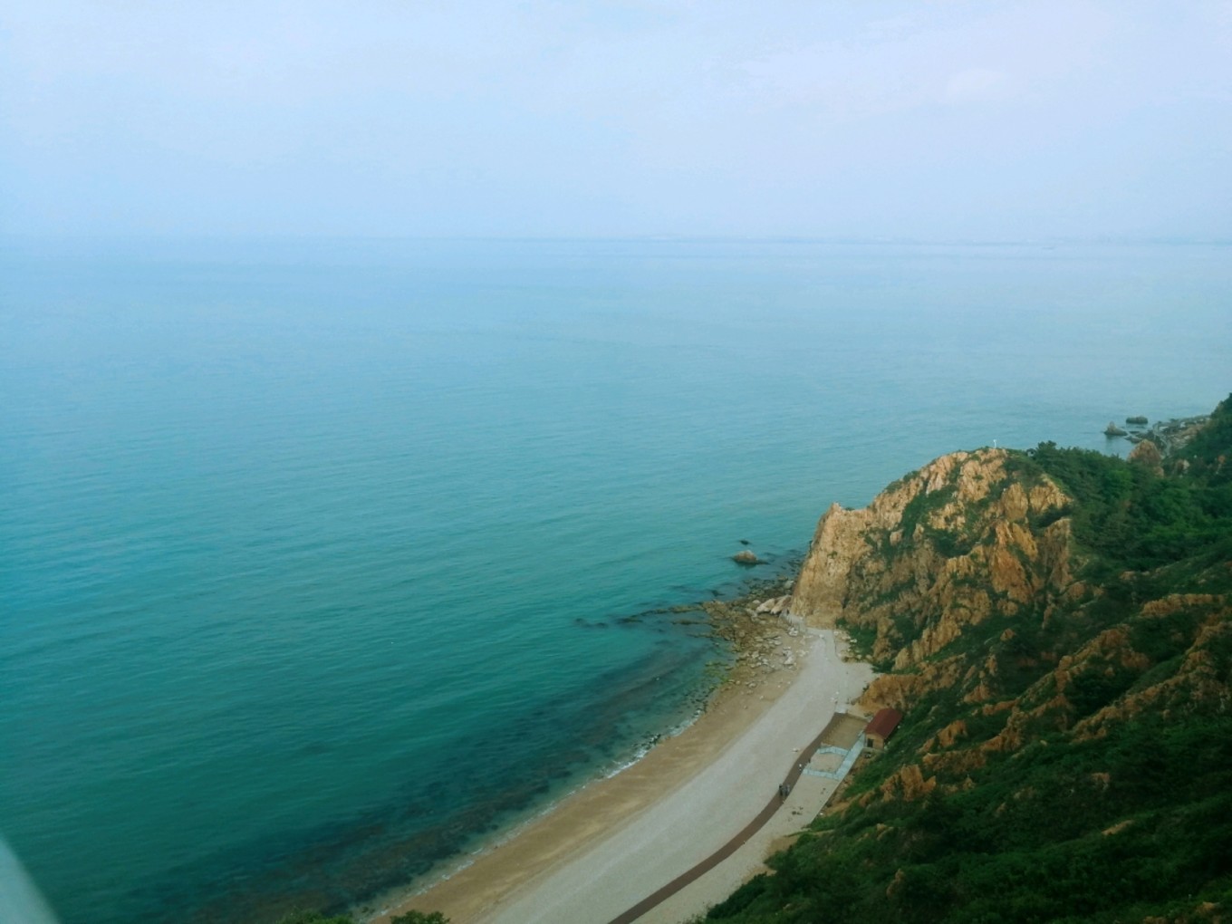 走上369級臺階,可以眺望黃渤海交界,果然兩個海水無法相融,中間一條分界線