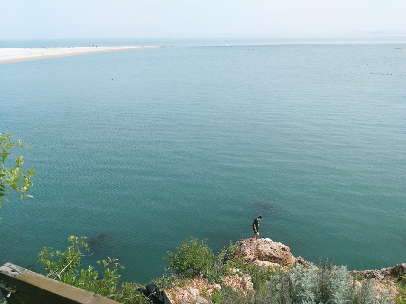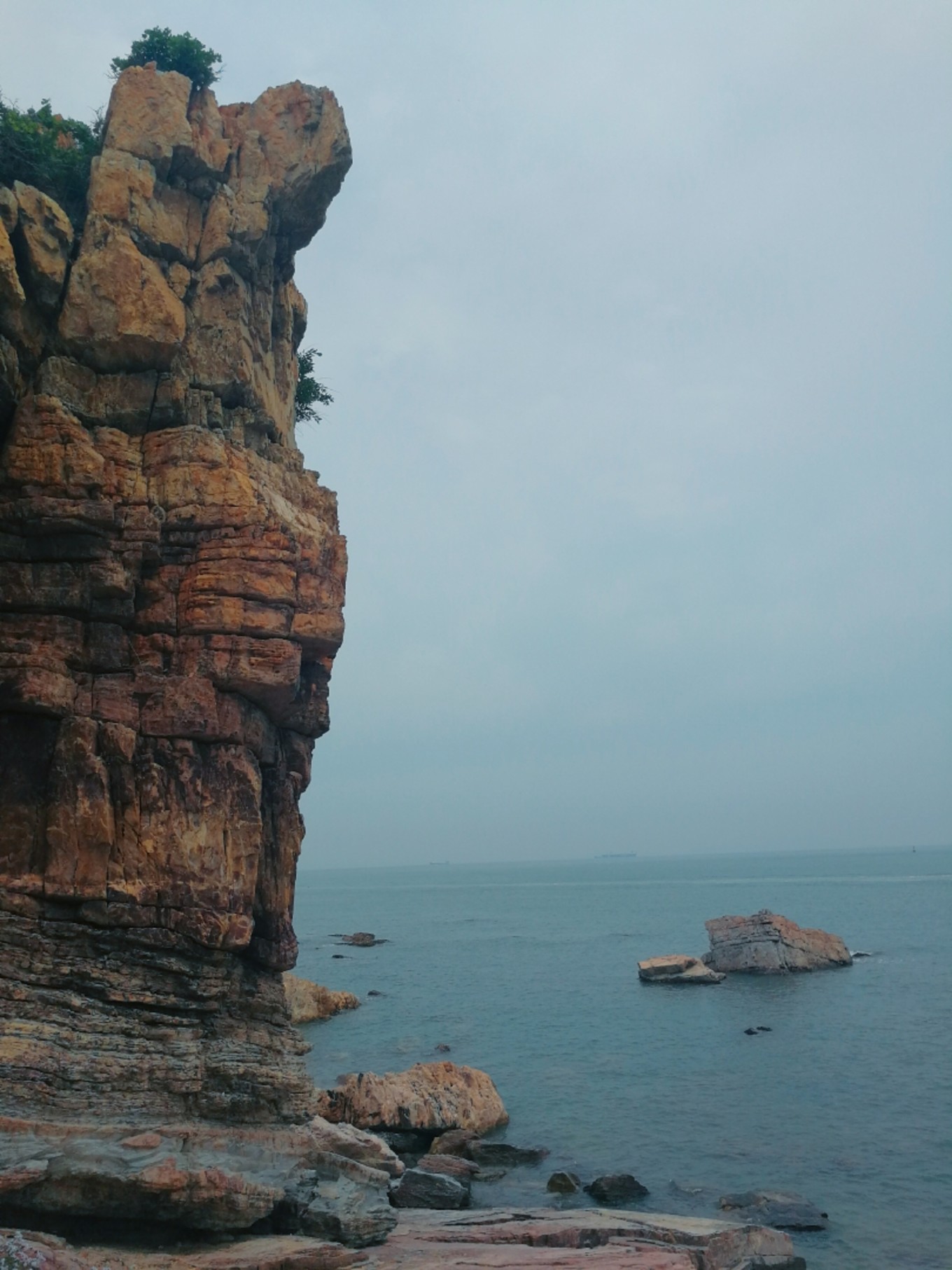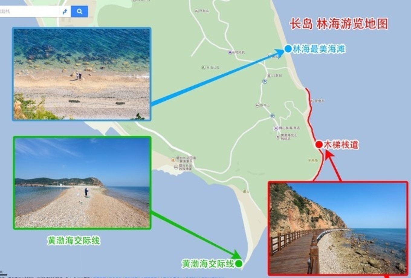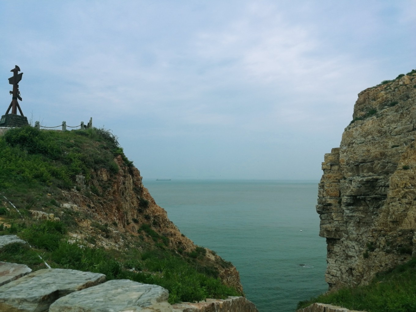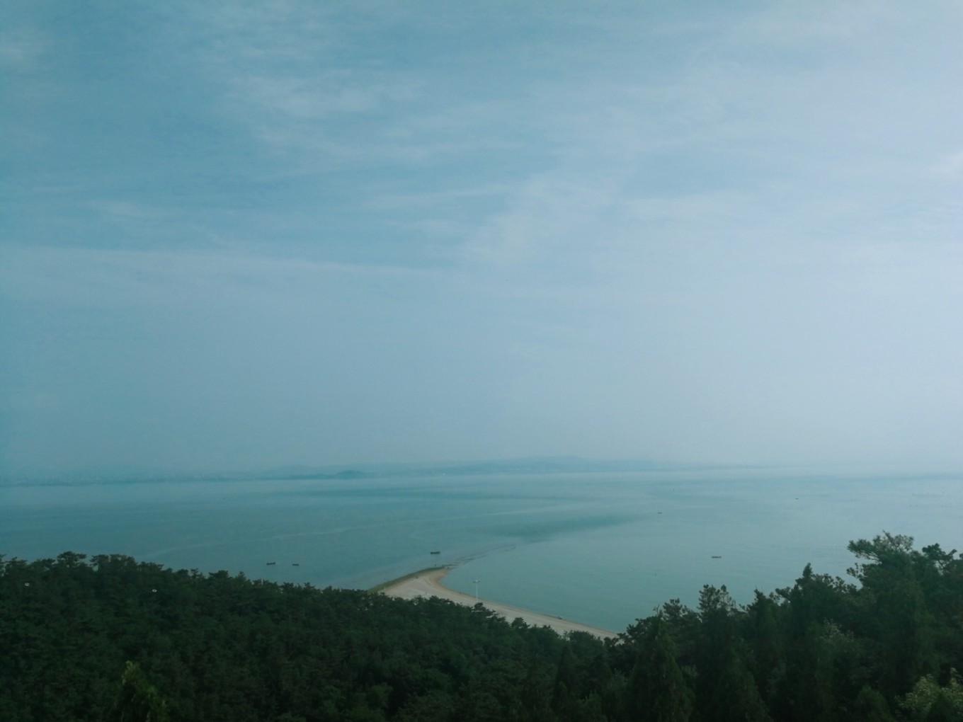 走上369級臺階,可以眺望黃渤海交界,果然兩個海水無法相融,中間一條分界線