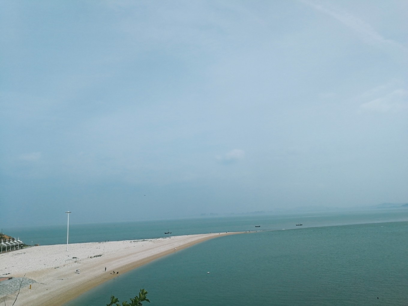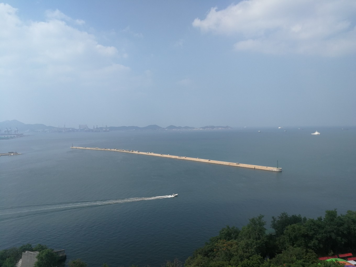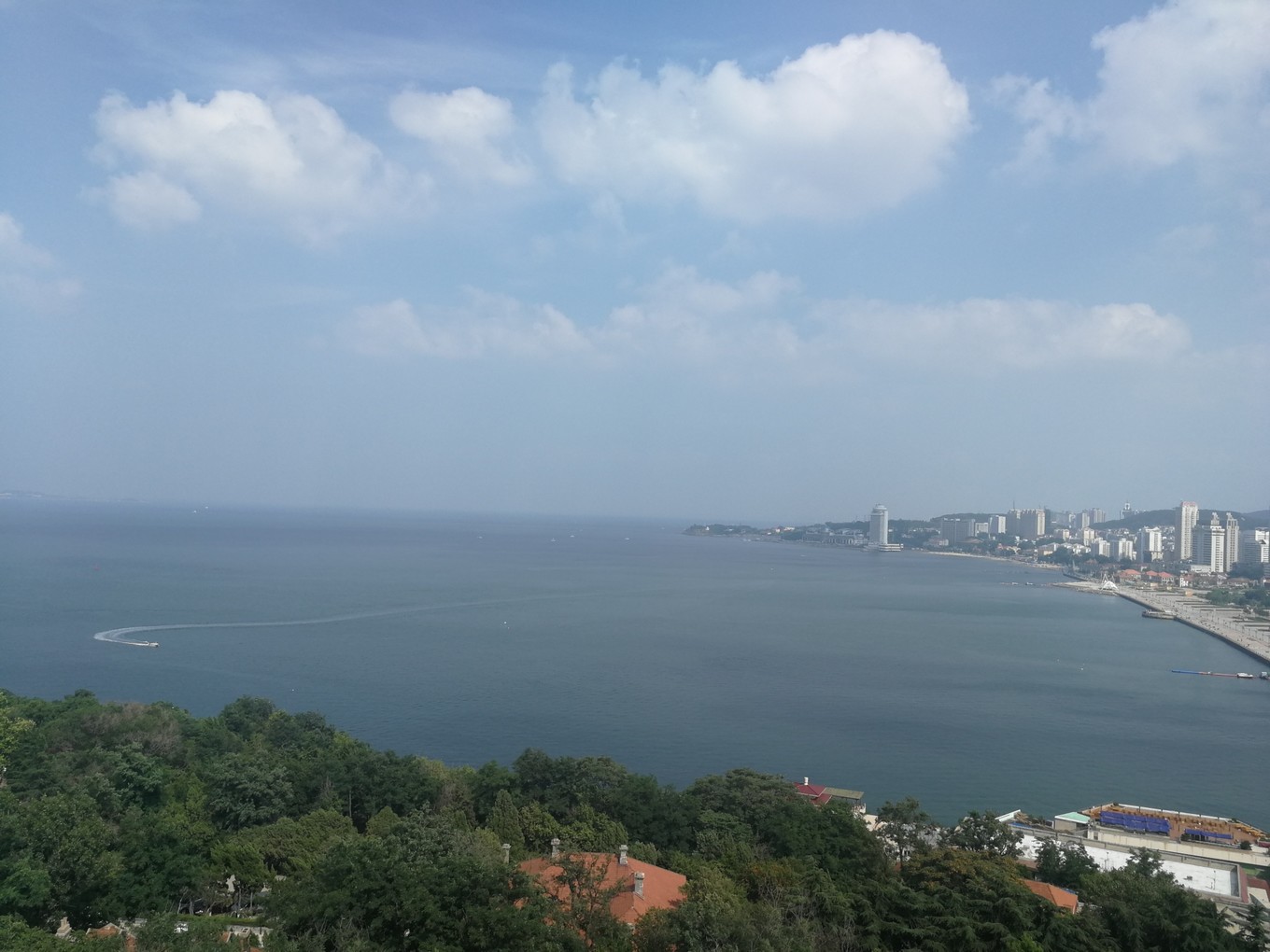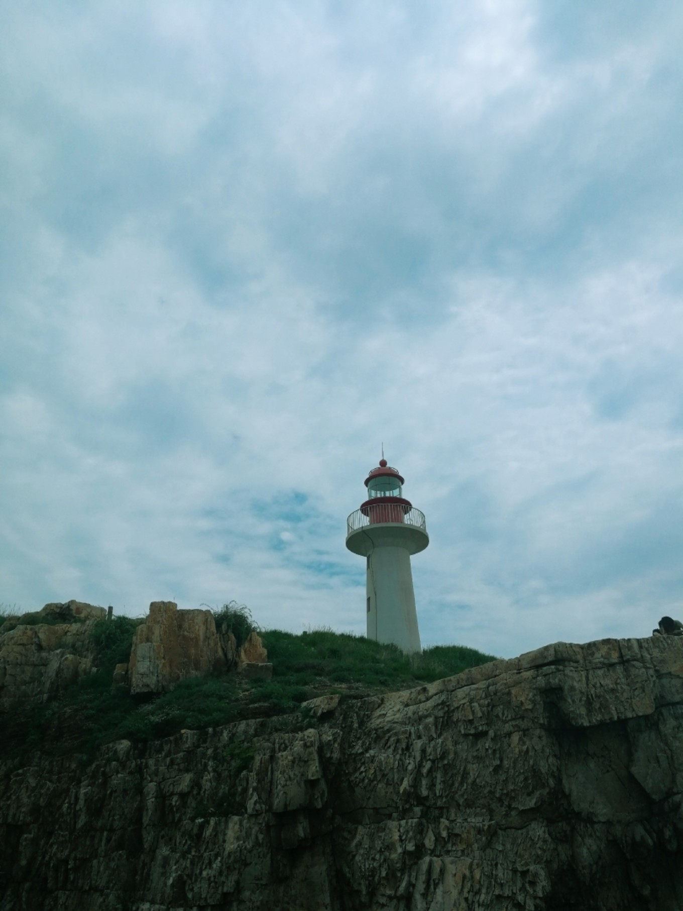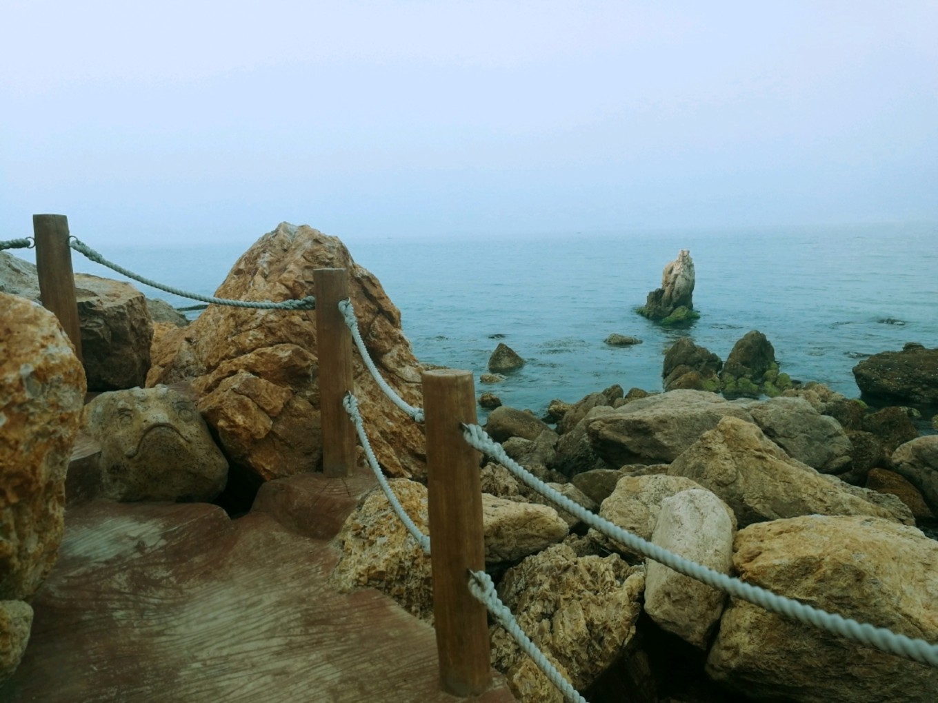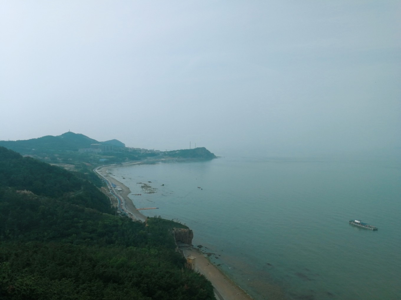 走上369級臺階,可以眺望黃渤海交界,果然兩個海水無法相融,中間一條分界線