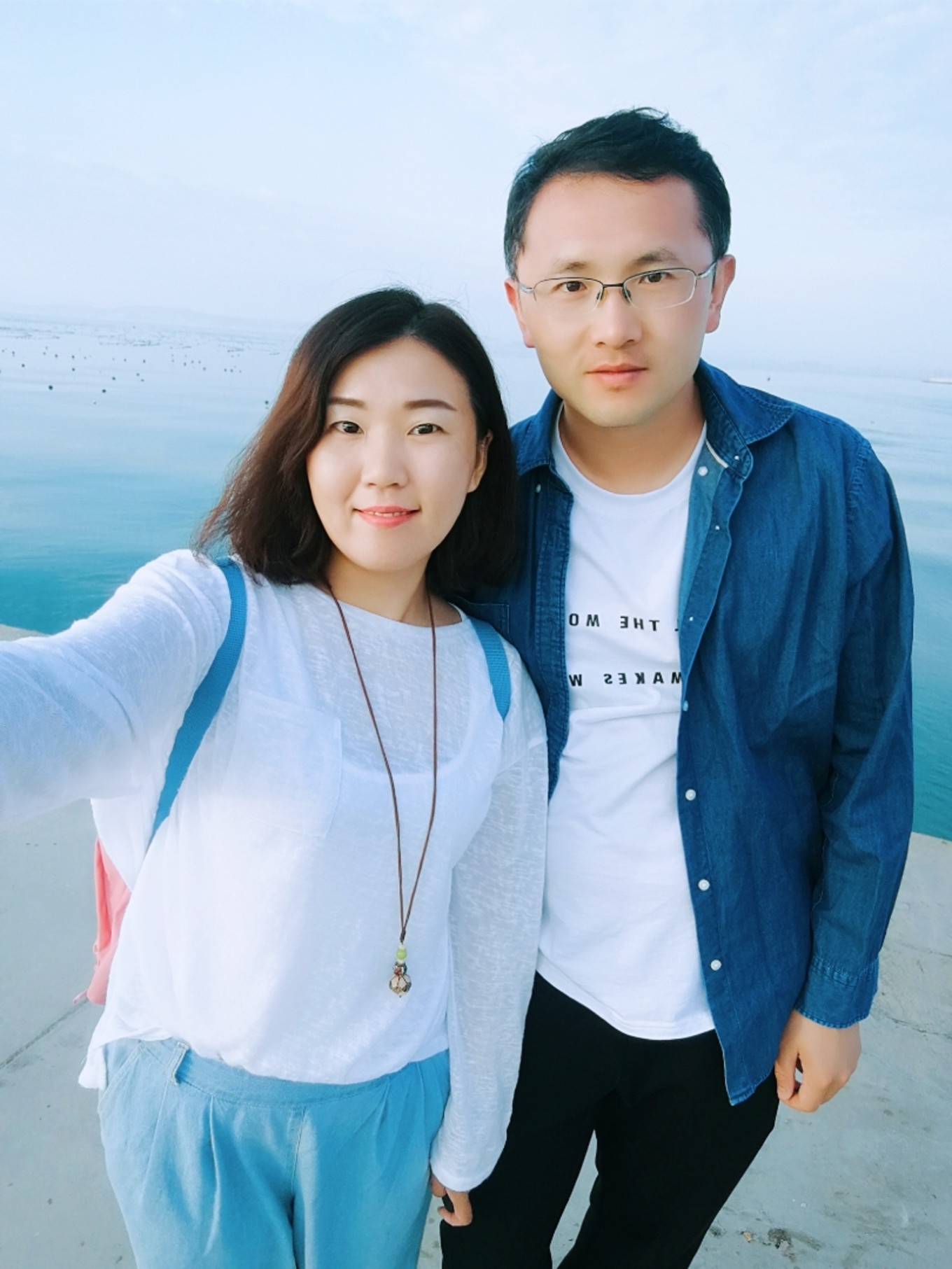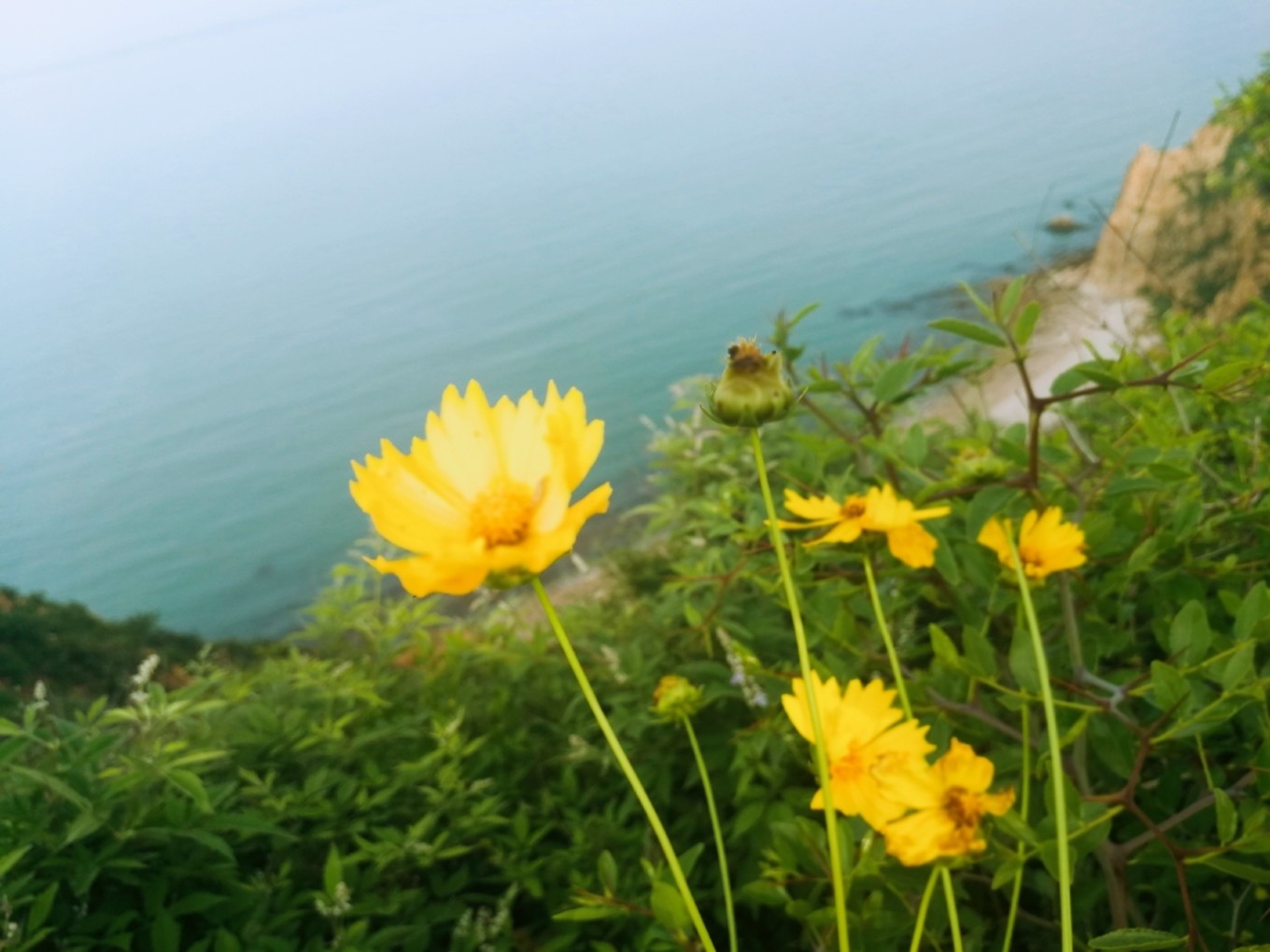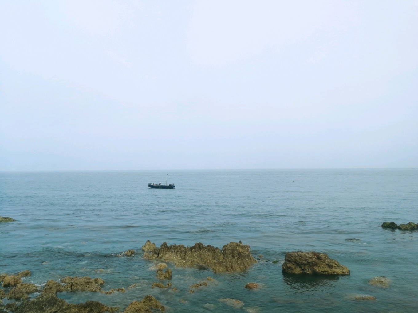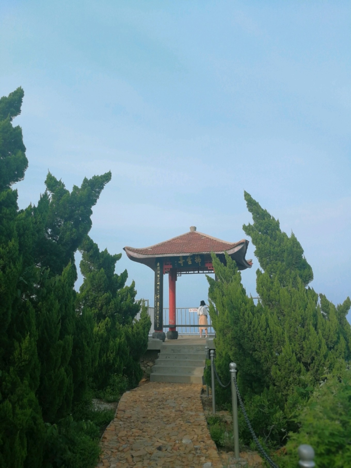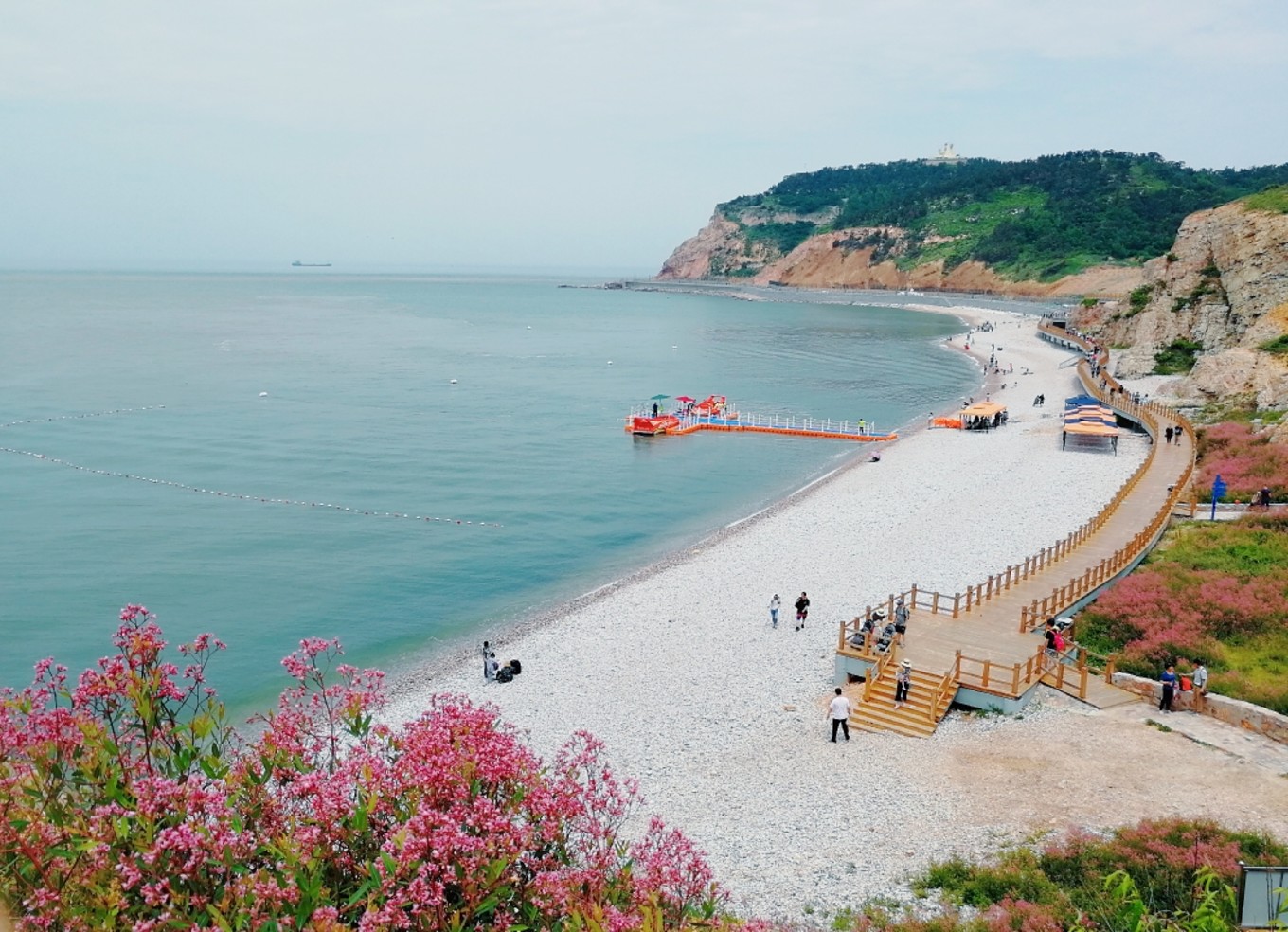 走上369級臺階,可以眺望黃渤海交界,果然兩個海水無法相融,中間一條分界線