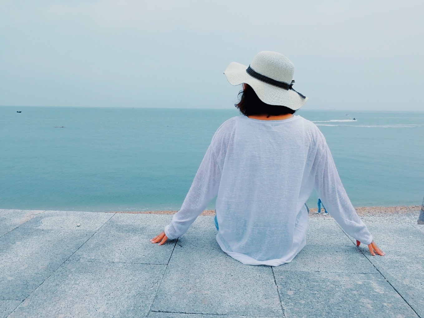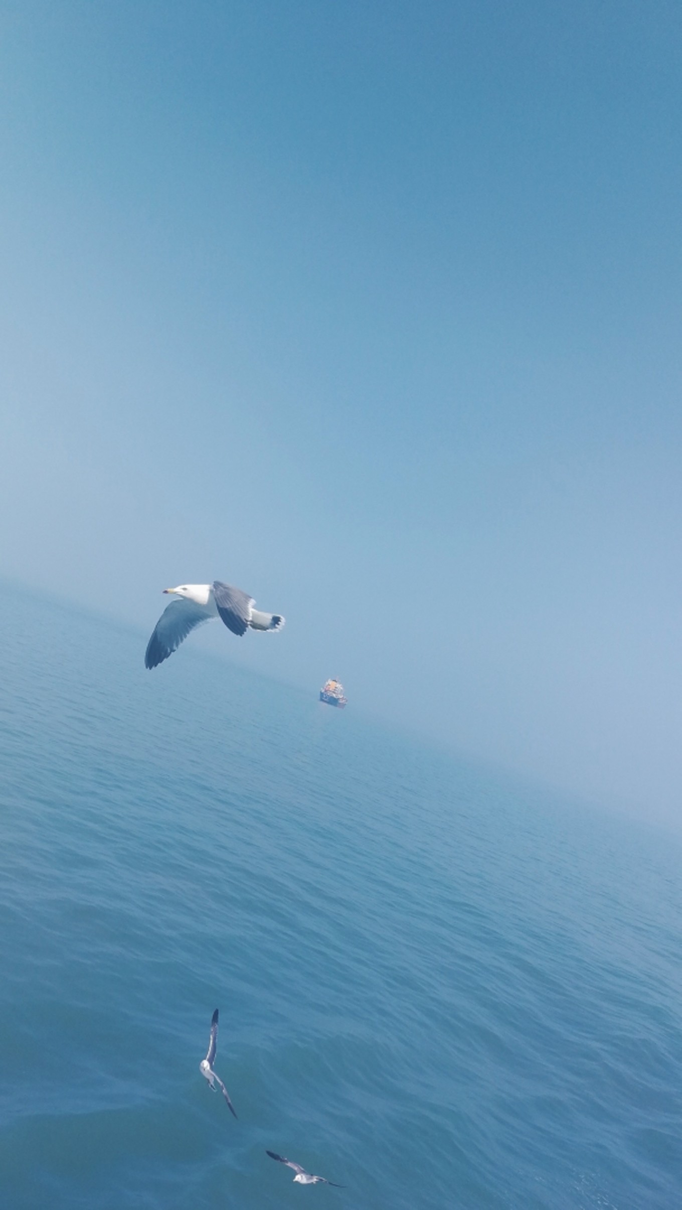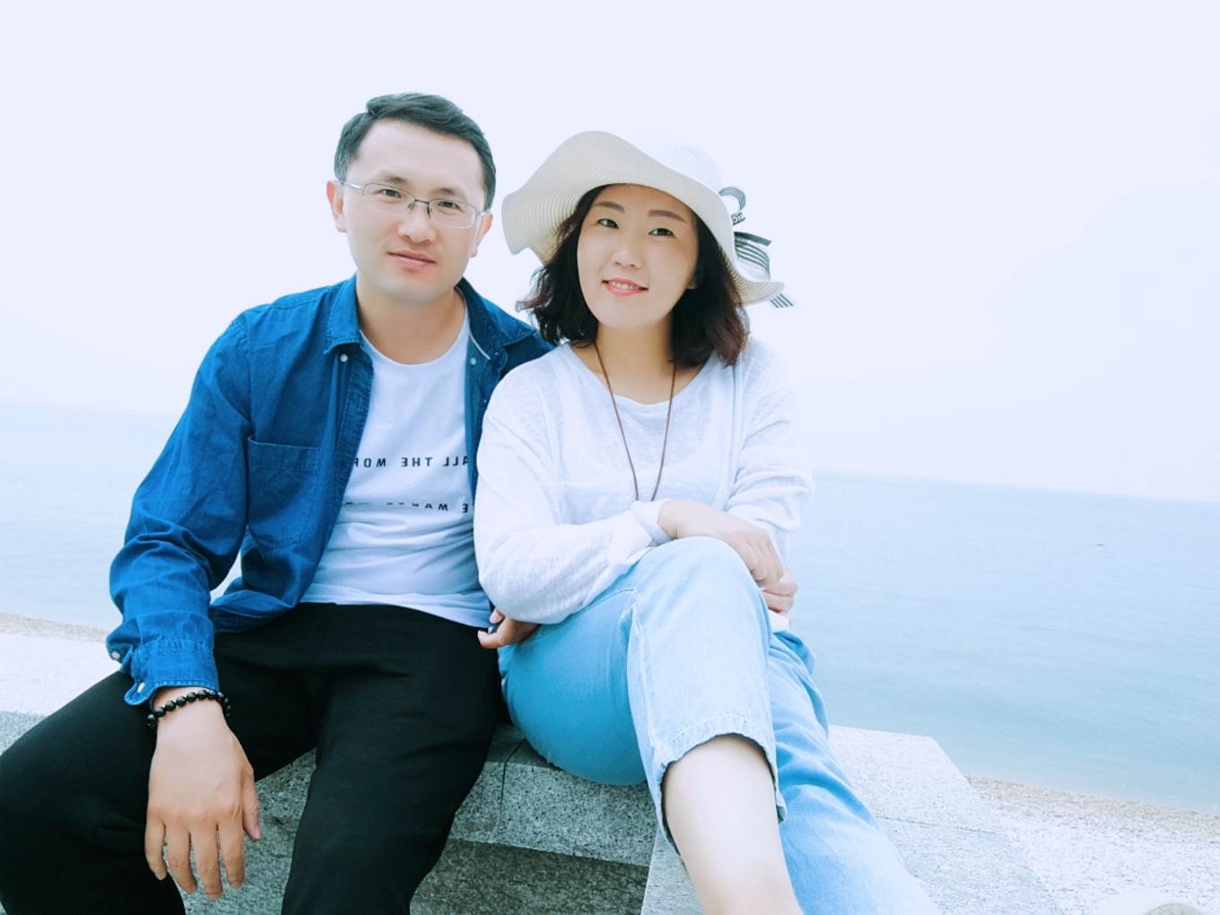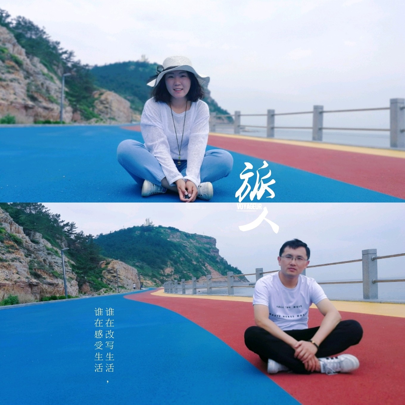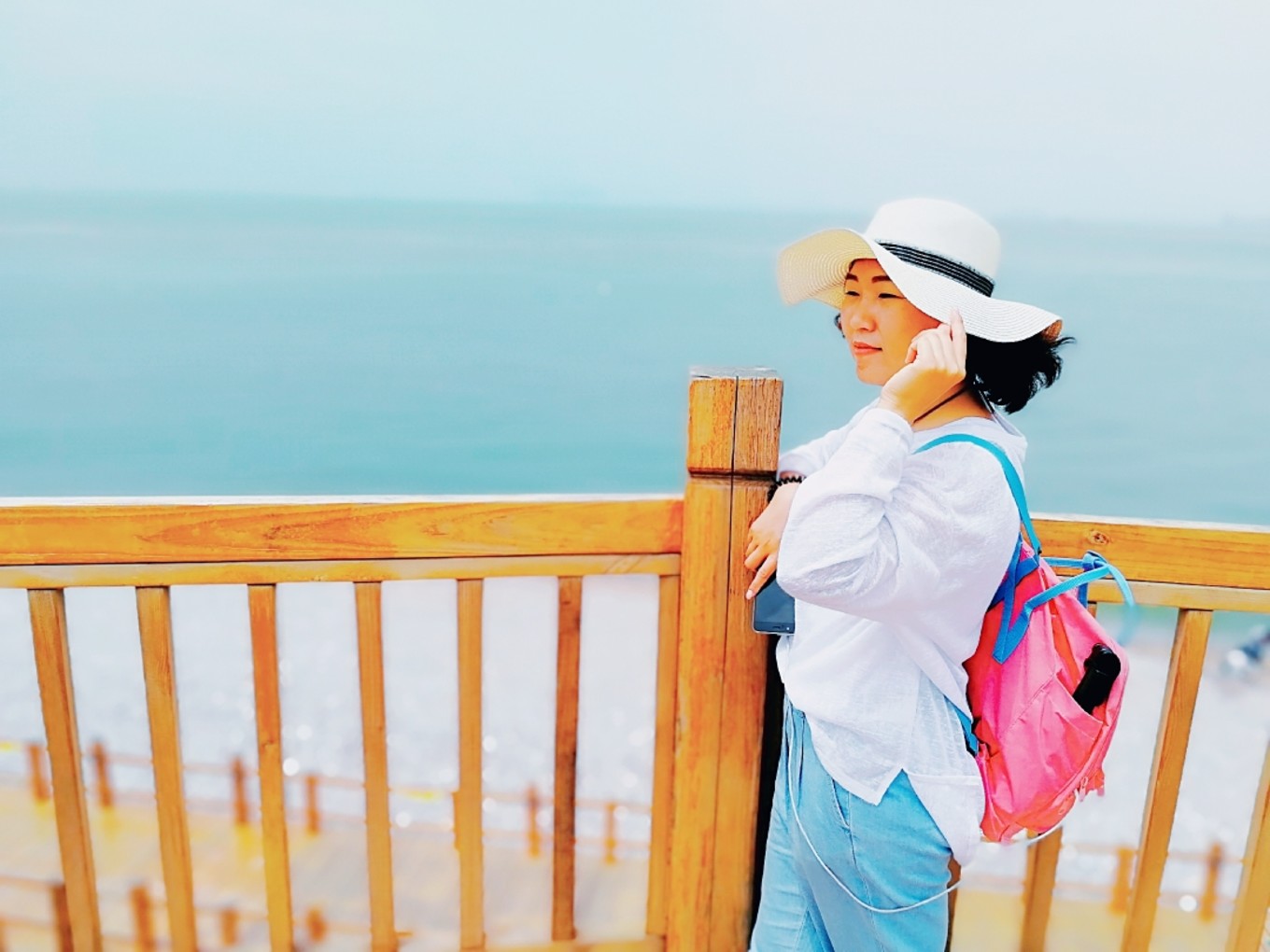 走上369級臺階,可以眺望黃渤海交界,果然兩個海水無法相融,中間一條分界線