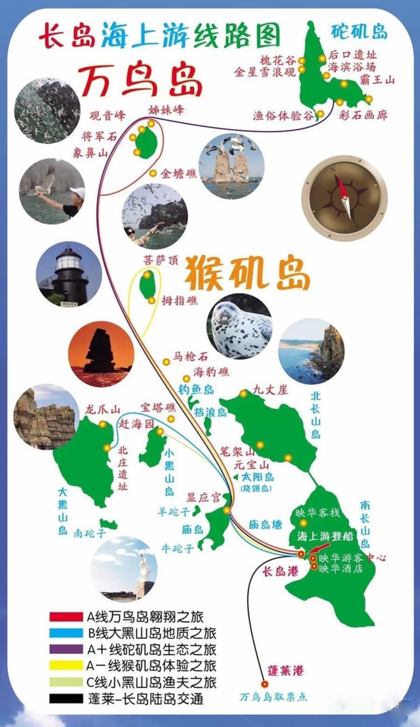 有個景點叫萬鳥島,我們舍棄了,分析下要坐船將近4小時一直在海上飄著,不下島,只有喂海鷗一個娛樂活動,船上環(huán)境還一般,往返的輪渡也可以喂海鷗,只不過數(shù)量比萬鳥島少了不少,如果是三天長島,可以有一天出海行程,兩天還是緊張的。