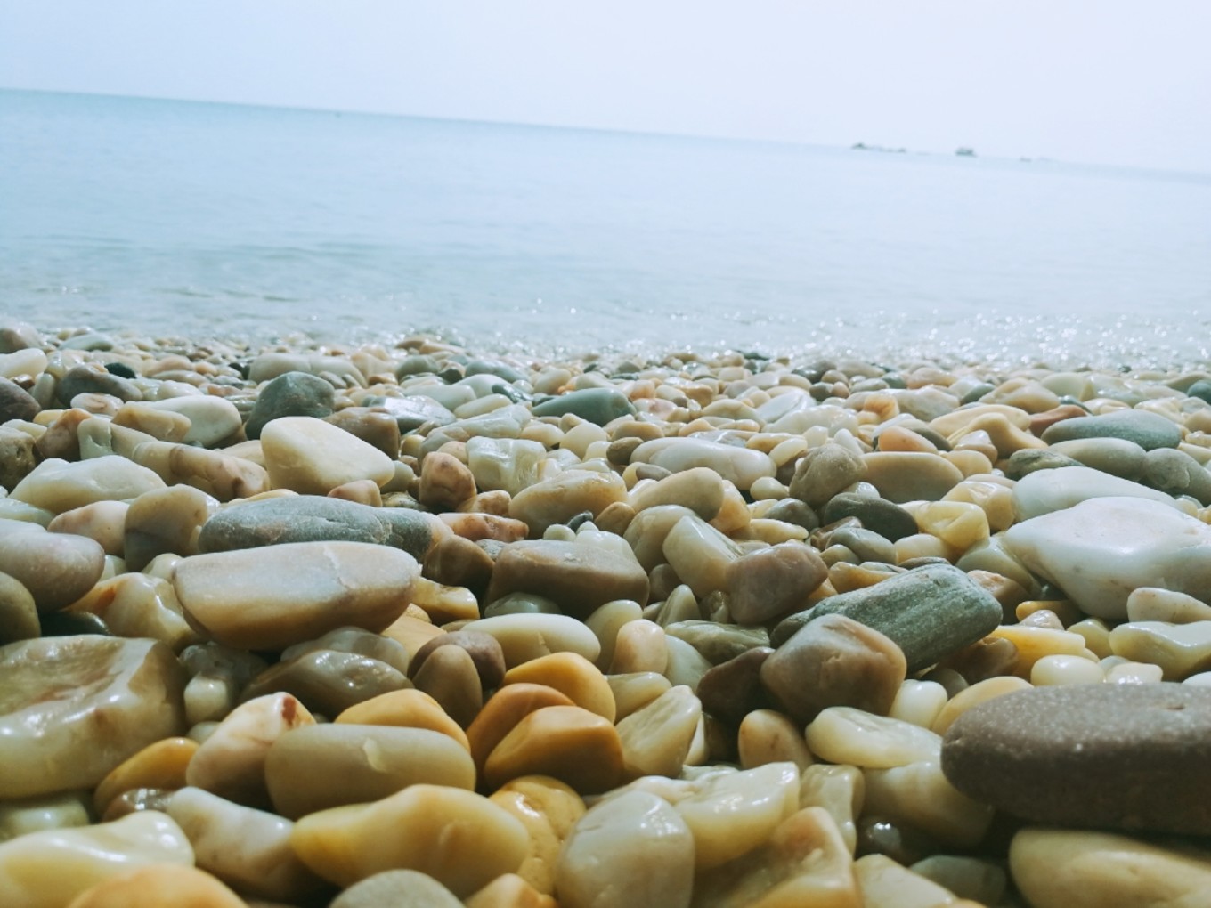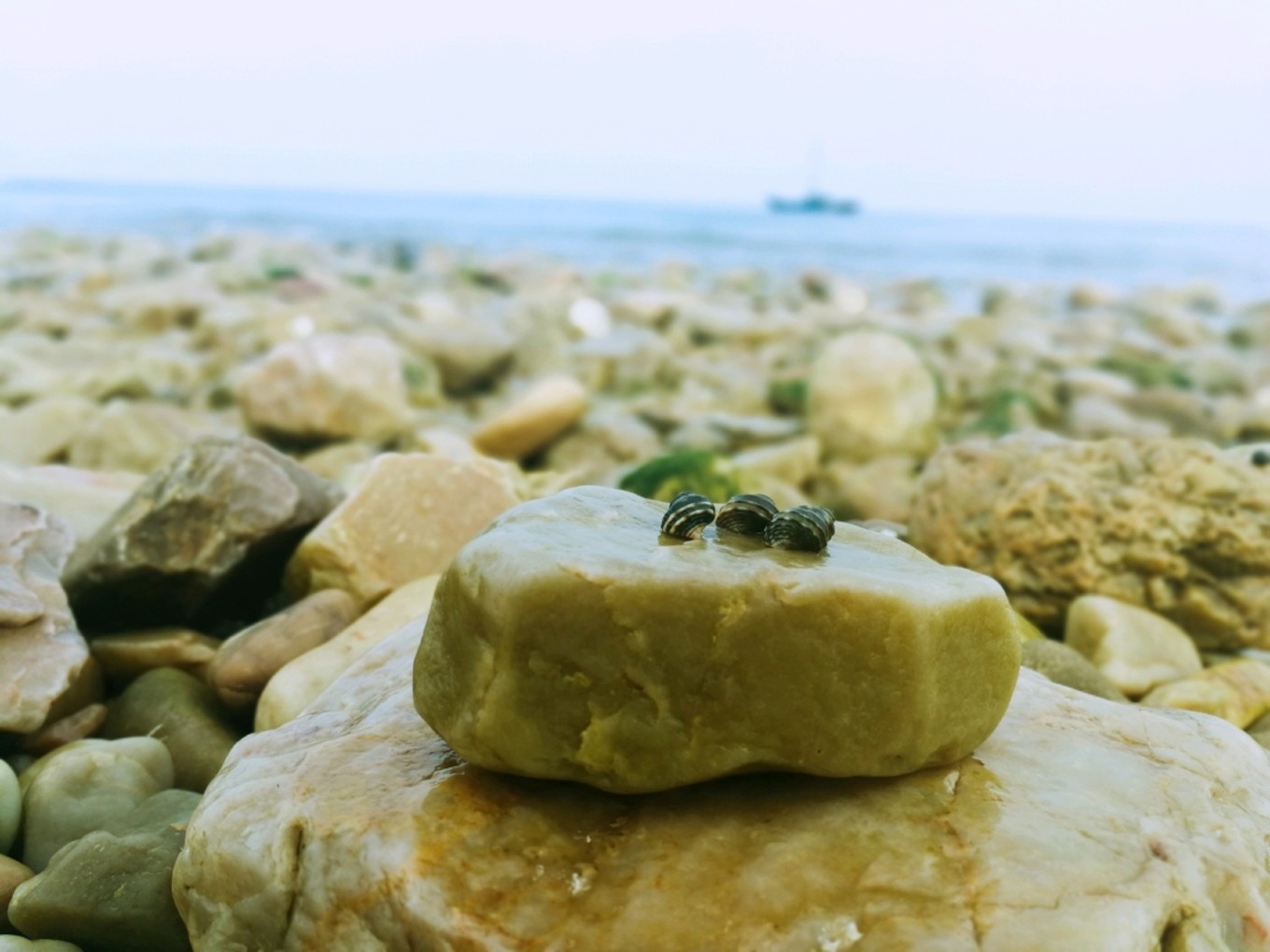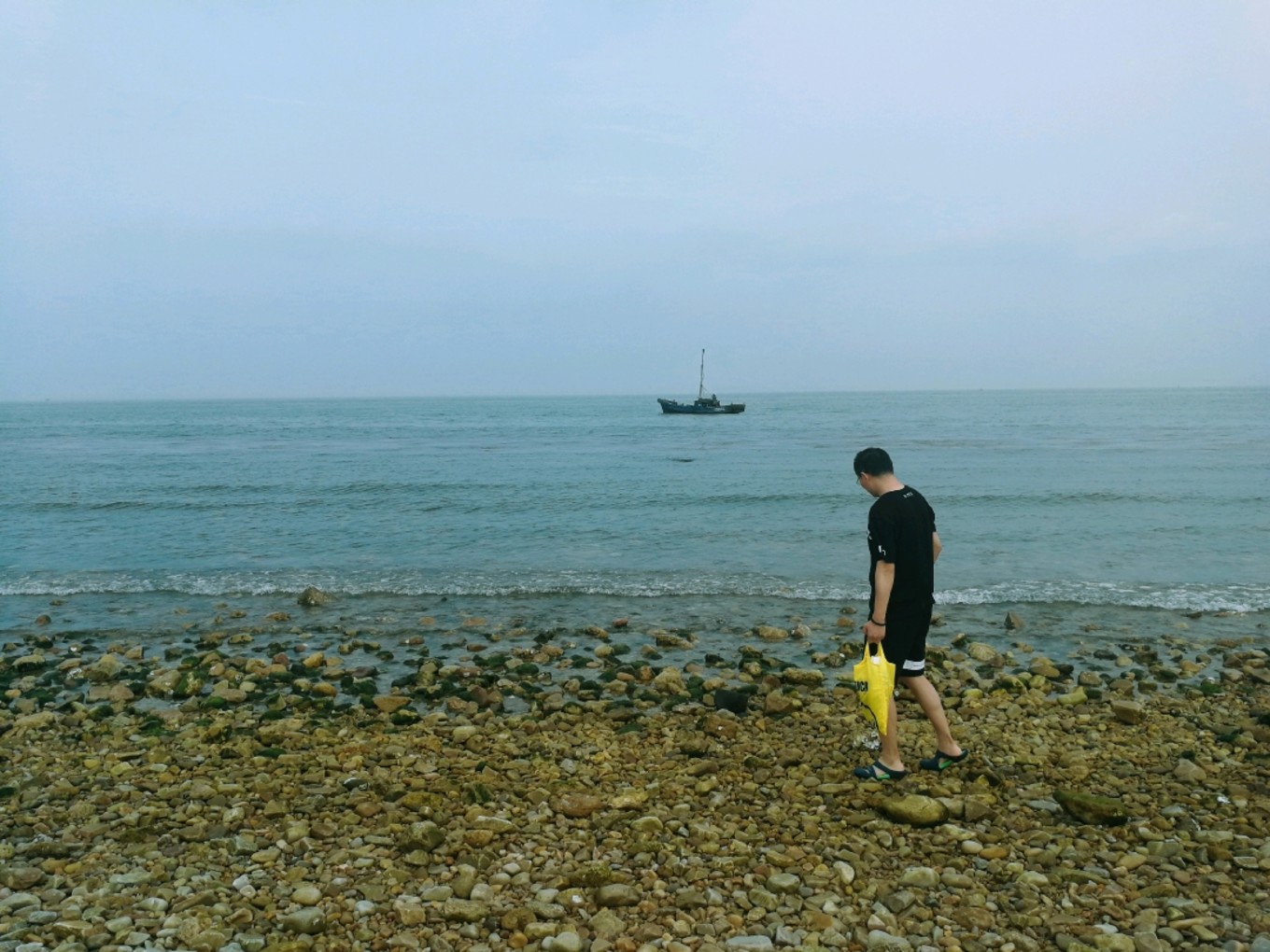 和老公在石頭灘上堆石頭竟然堆了一個小時,感覺太喪志了,于是決定起身徒步轉島游