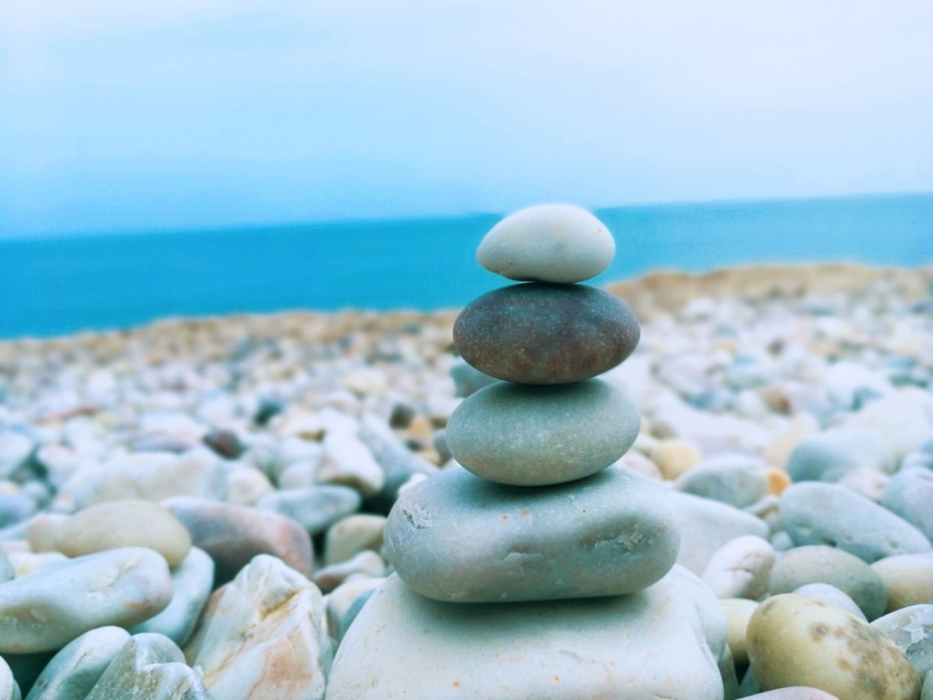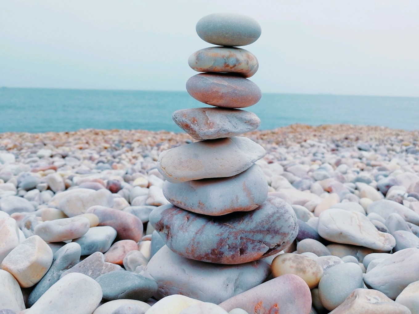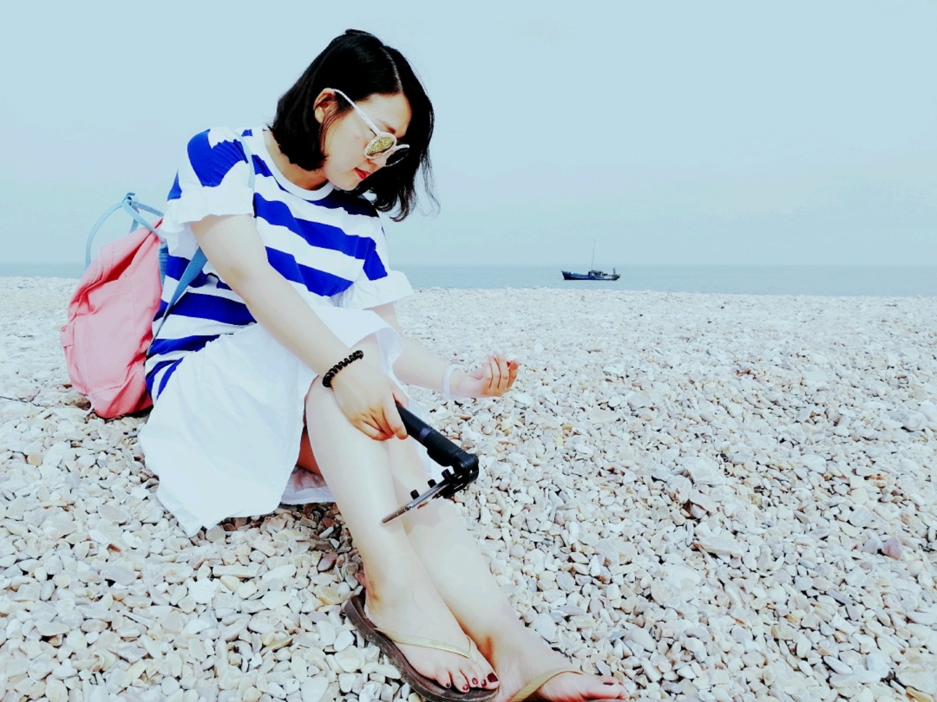 和老公在石頭灘上堆石頭竟然堆了一個小時,感覺太喪志了,于是決定起身徒步轉島游