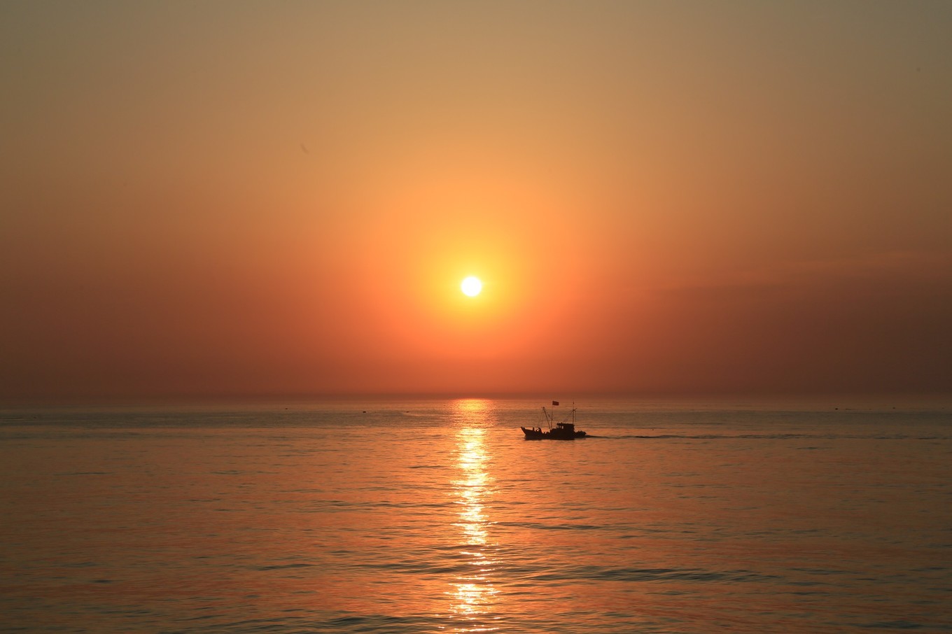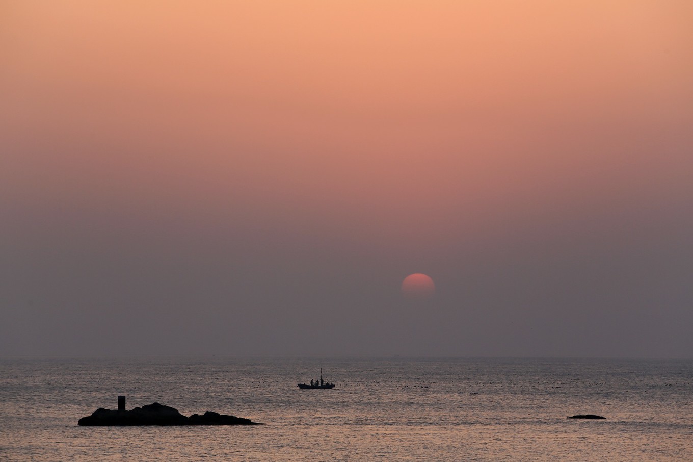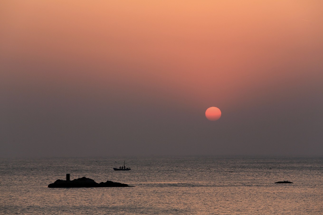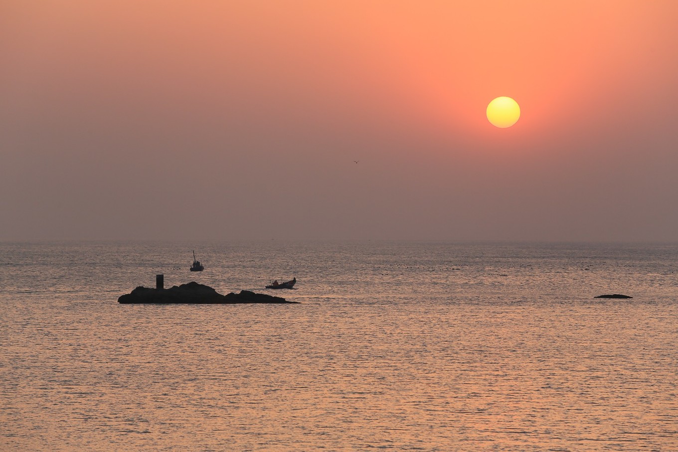 原本上,我們打算第一天就趕到九丈崖看日落,但是登船的時(shí)間著實(shí)晚了一些。當(dāng)然,并不遺憾,因?yàn)樵诖暇桶训谝淮蔚娜章淇戳恕?/p>