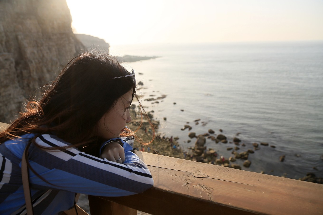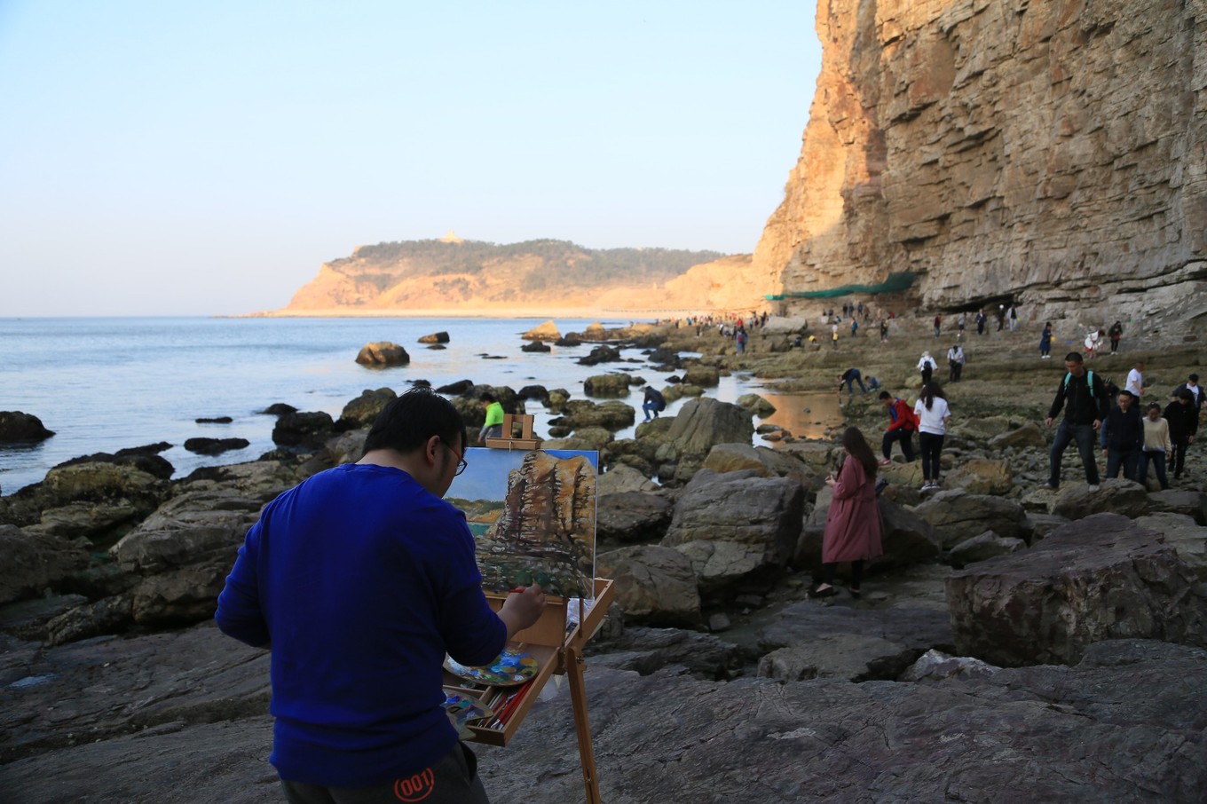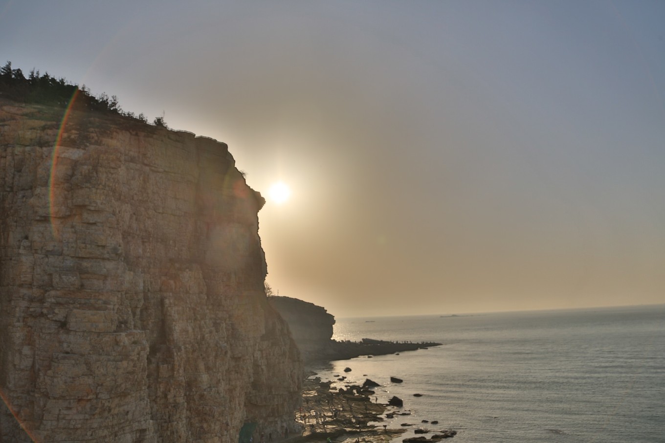 九丈崖離月牙灣很近。到了下午4、5點(diǎn)的時(shí)候,會有很多的游客聚集在此。棧道旁的巖石中會有很多的小螃蟹,小魚。孩子們在找著,大人們來幫忙搬石頭。盡頭就會是非常好的日落觀賞點(diǎn)。