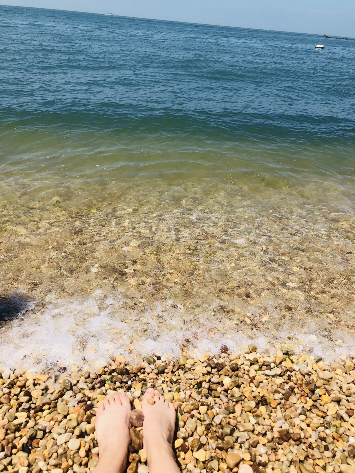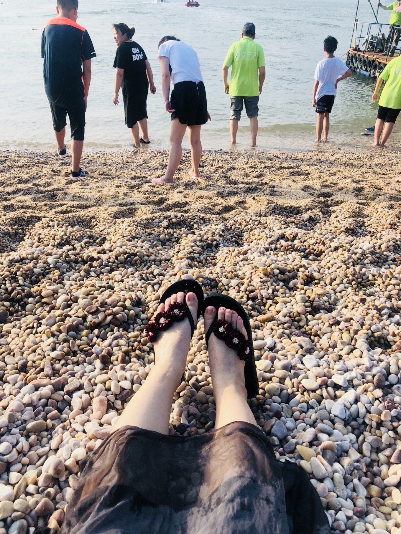 月牙灣相當(dāng)于一個海邊浴場,人還蠻多的。鵝暖石的沙灘。想做腳底按摩的小伙伴們可以多走兩圈哈哈哈哈。
