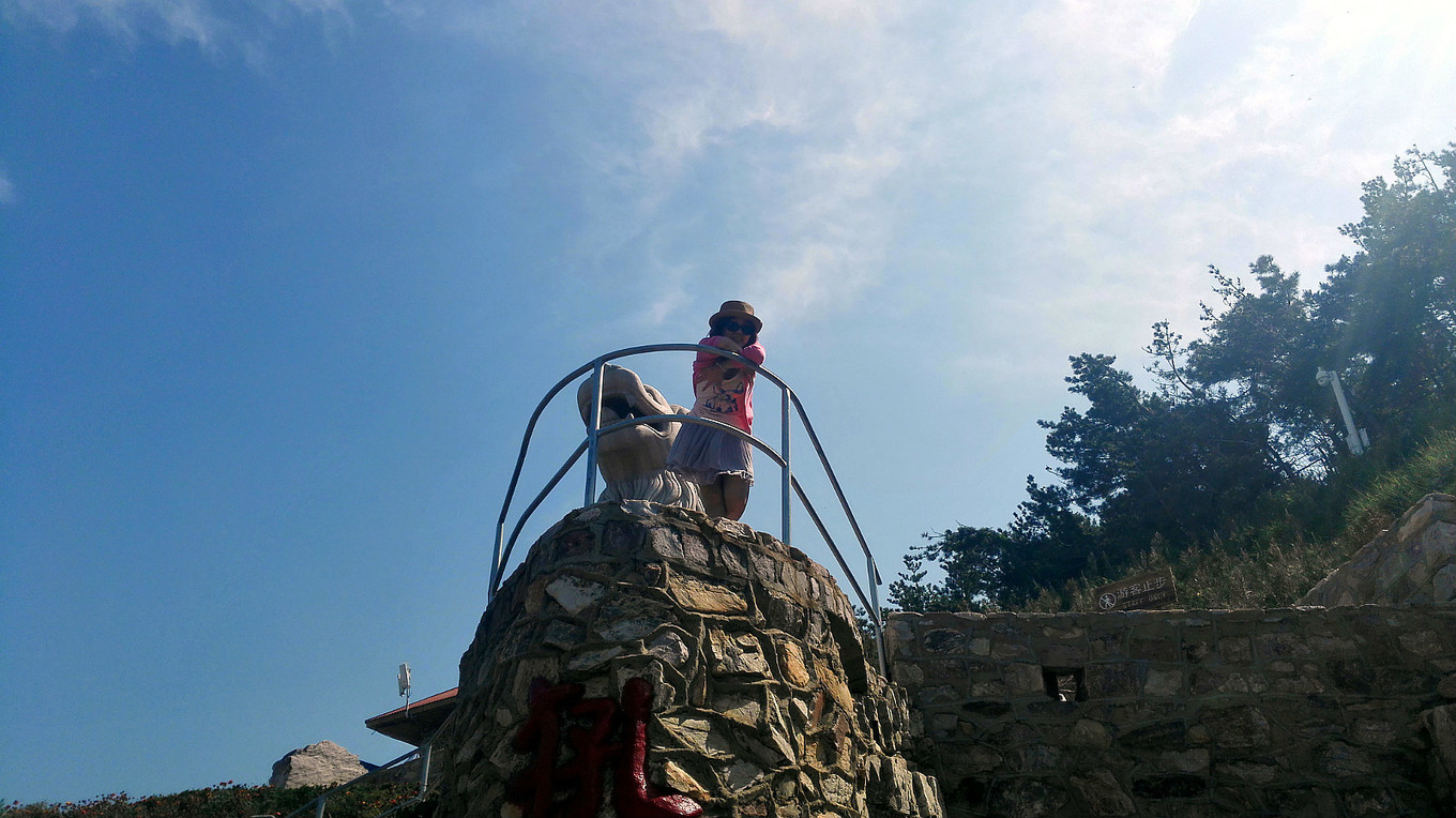 海邊盤旋而上的小山坡上有個(gè)像獅子一樣的雕像,它叫做犼~