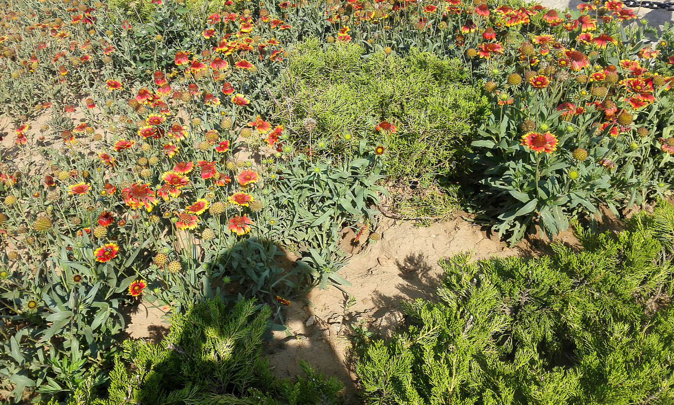 在海邊,除了純藍(lán)的天海,偶爾還有顏色鮮艷的花草。