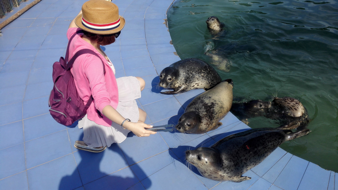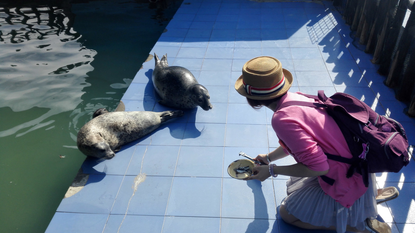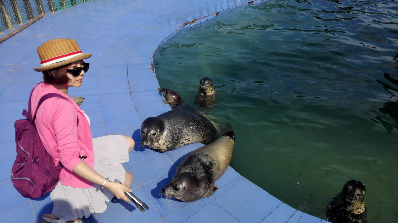 月牙灣公園里,喂食幾歲的小海豹,這個(gè)活動(dòng)超級(jí)受歡迎。