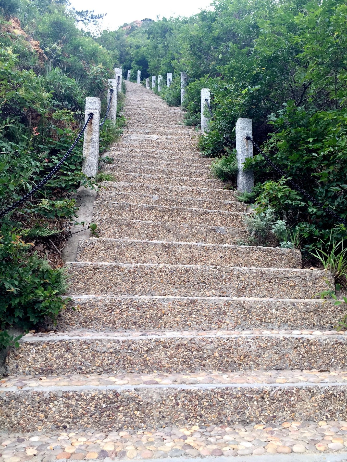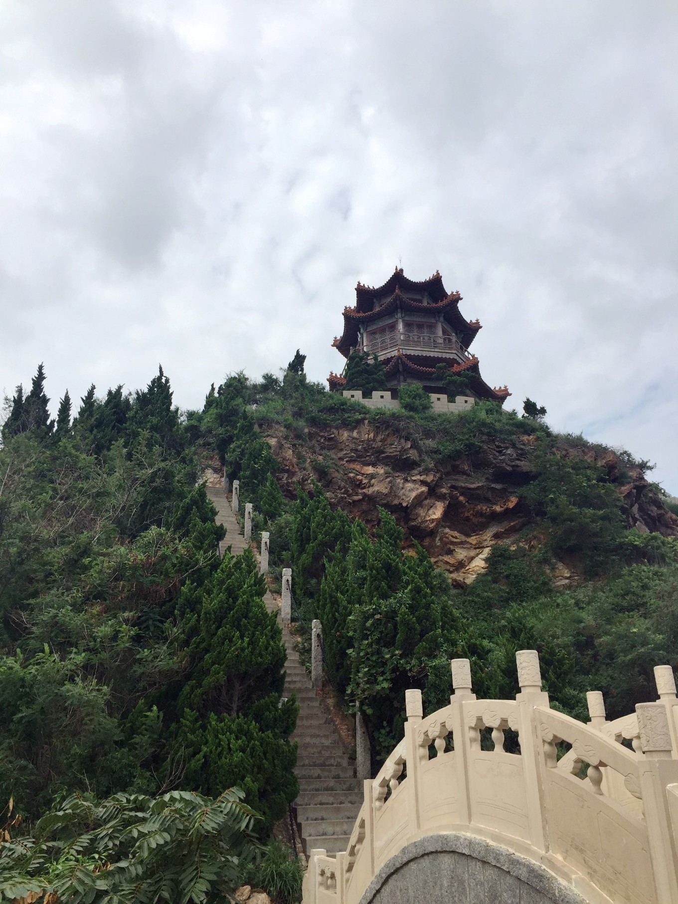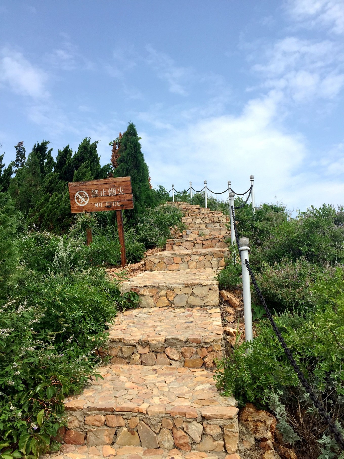 烽山林海是相連的,車從烽山進(jìn)可以直接開到林海。烽山到山頂來回大概就2.300臺(tái)階,但是山頂可以俯覽整個(gè)長(zhǎng)島。風(fēng)景很美,值得為她流汗